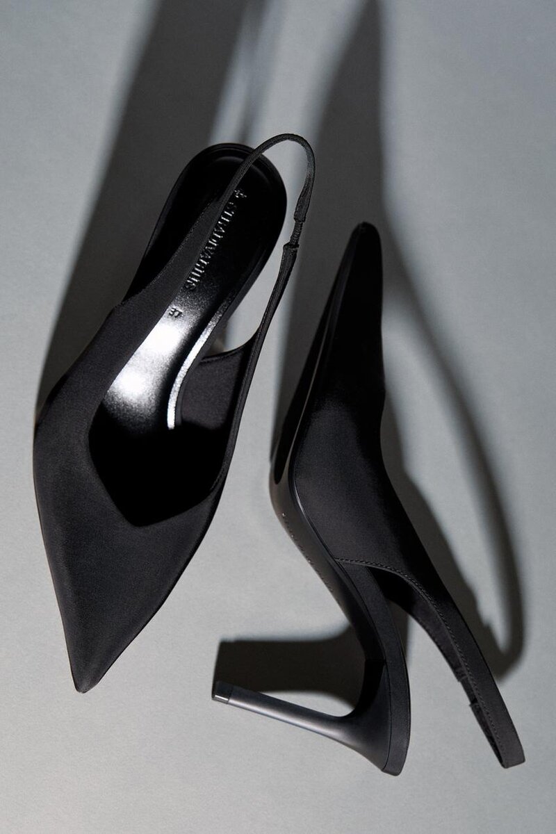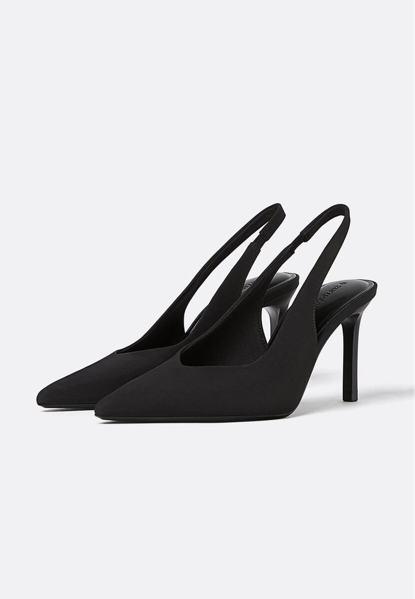 Basic sandály. Špičatá špička. K dispozici v černé barvě. Výška podpatku: 8,5 cm.