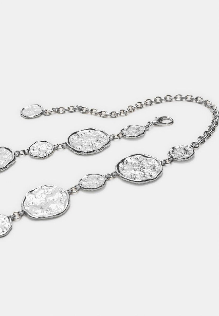 Kovový pásek s kulatými destičkami ve Stradivarius za pouhých 17,9 $ K dispozici po omezenou dobu. Null pro ženy Vždy v módě, přijďte a zjistěte to hned!
