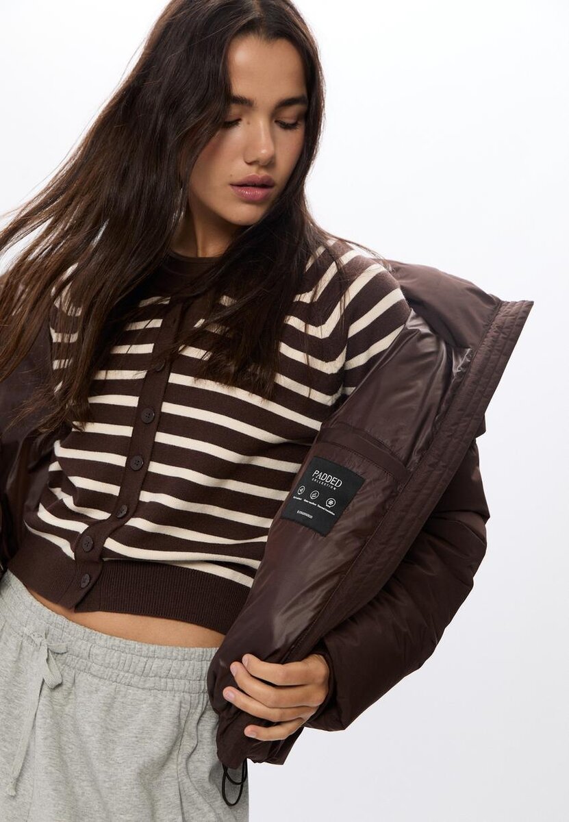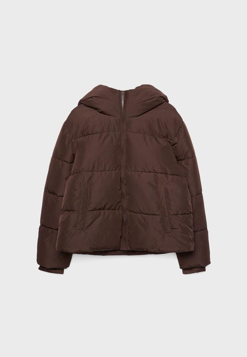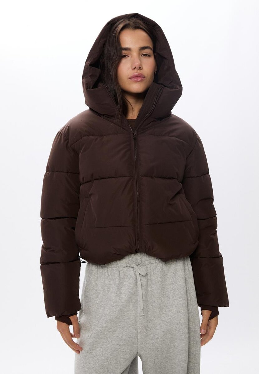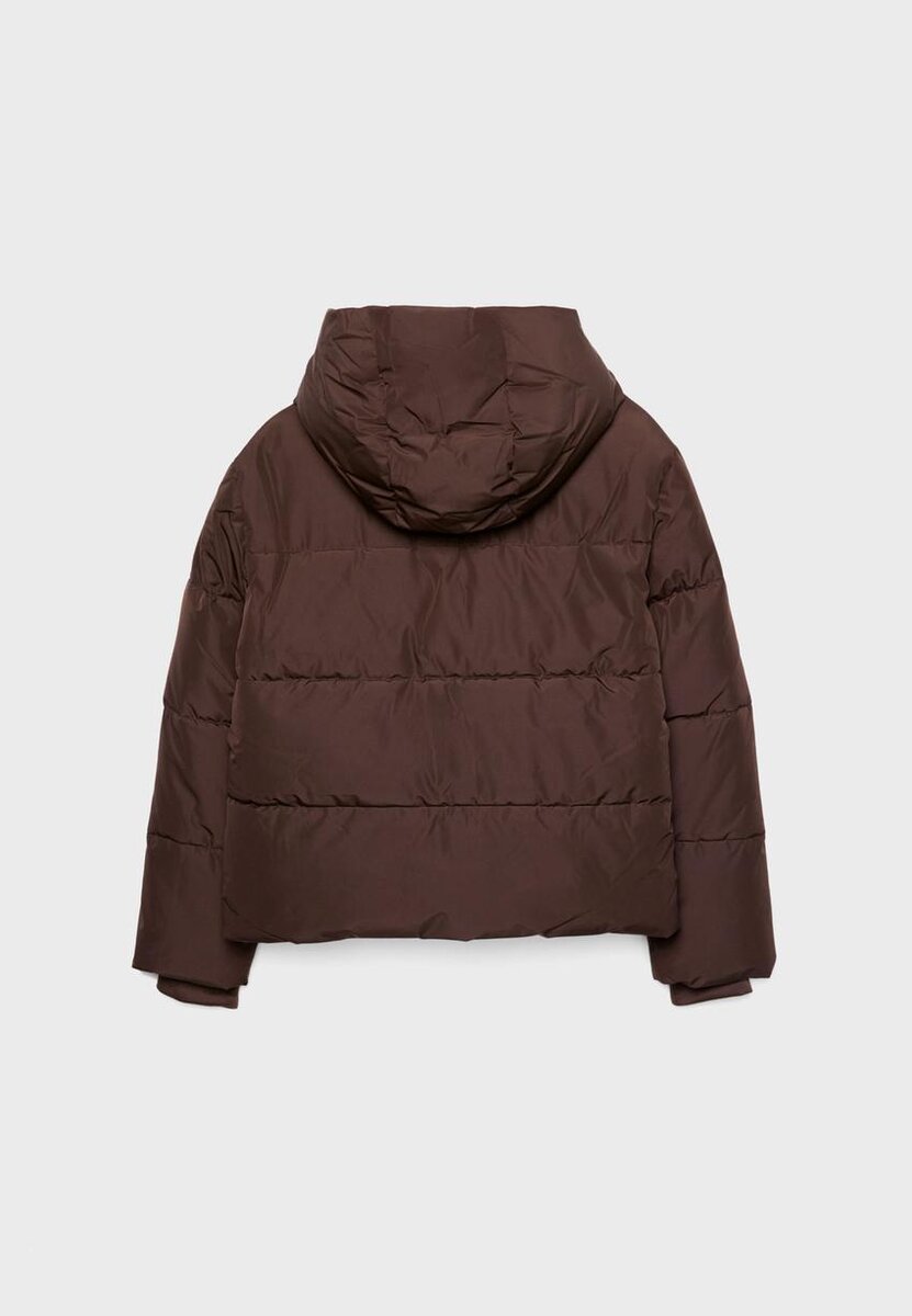 Péřová bunda s vysokým límcem, kapucí a dlouhými rukávy s manžetami. Má boční kapsy se zapínáním, nastavitelný spodní lem s elastickou stahovací šňůrkou a zarážkou a zapínání na zip vpředu. K dispozici v několika barvách.
