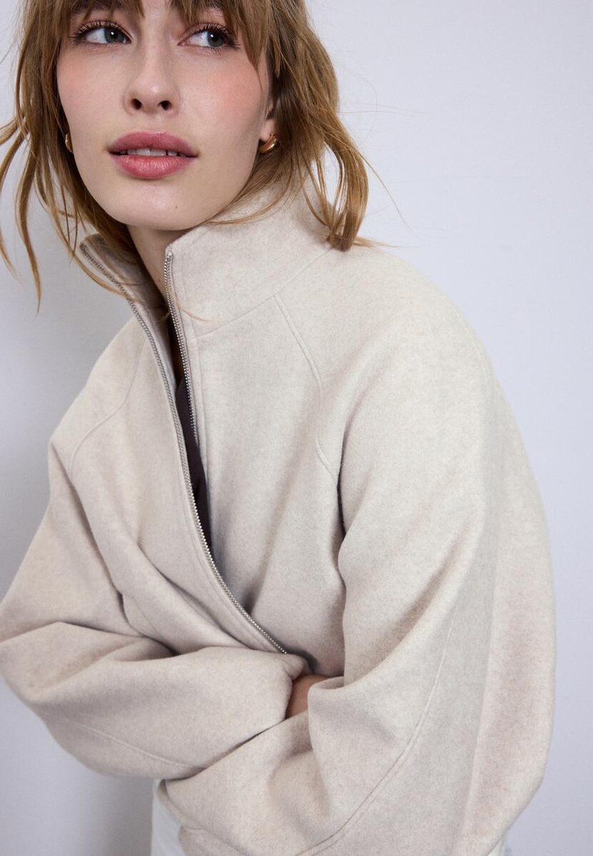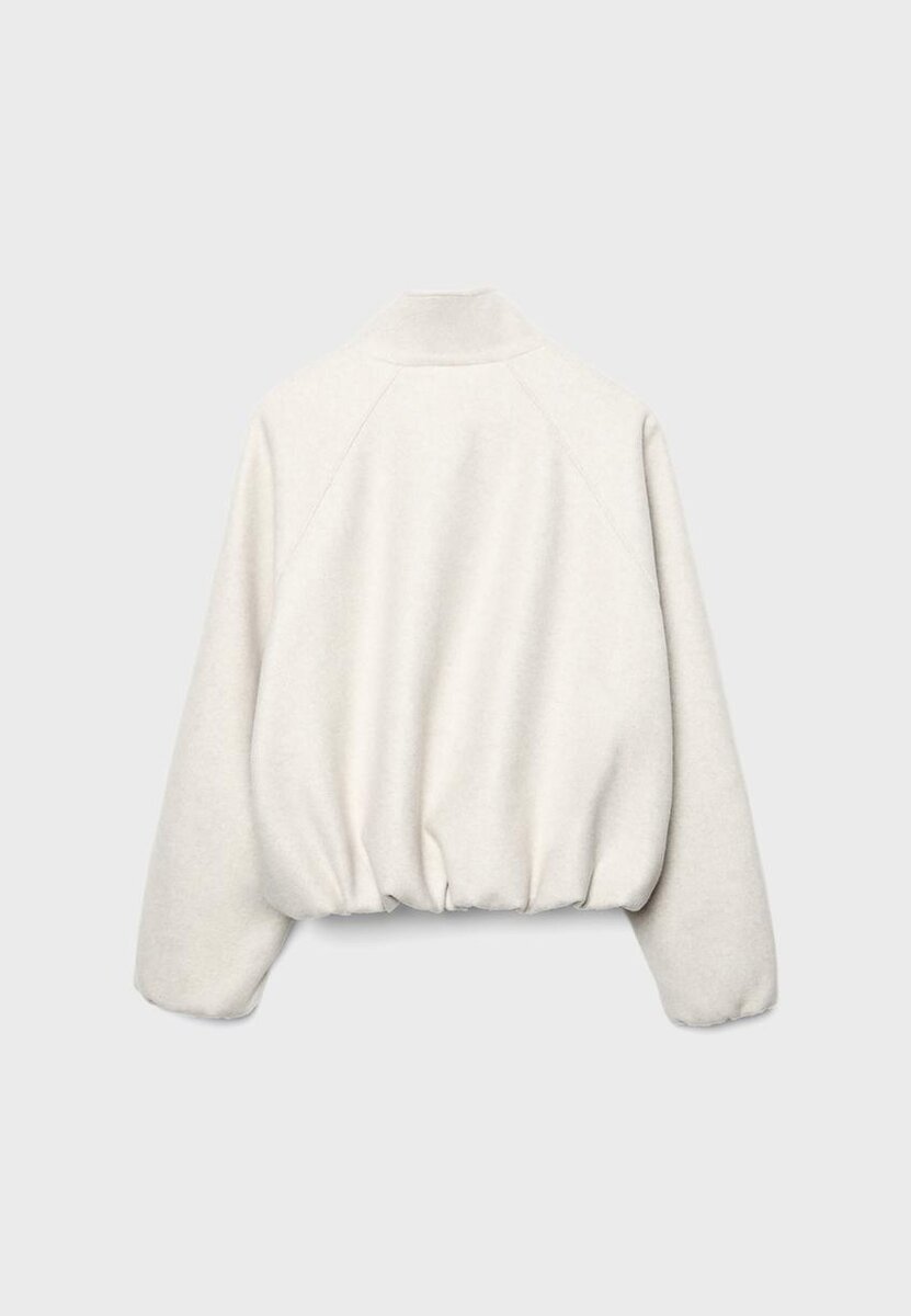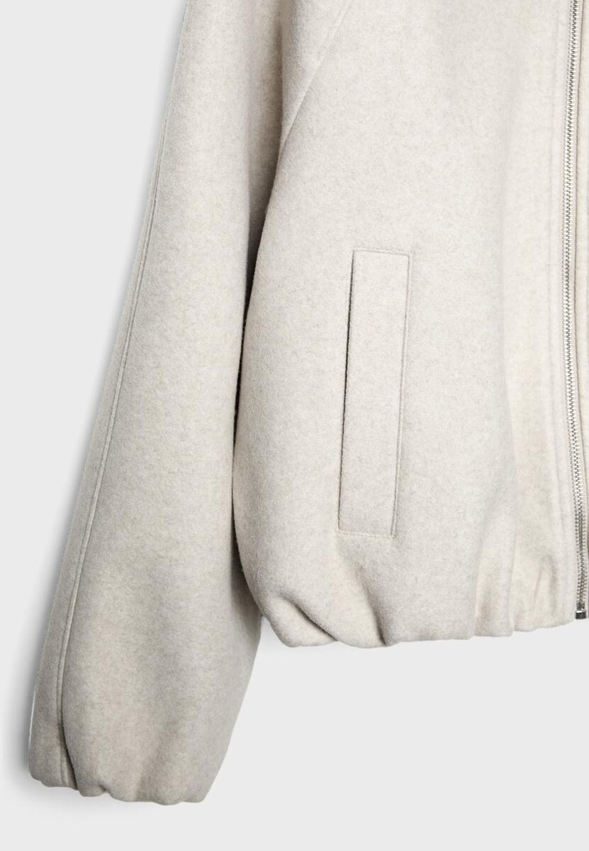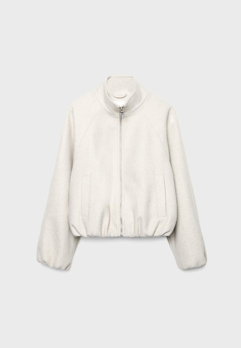Bomberová bunda s vysokým límcem. Dlouhé rukávy a elastický balónový lem. Přední kapsy s lemováním. Zapínání na zip vpředu.