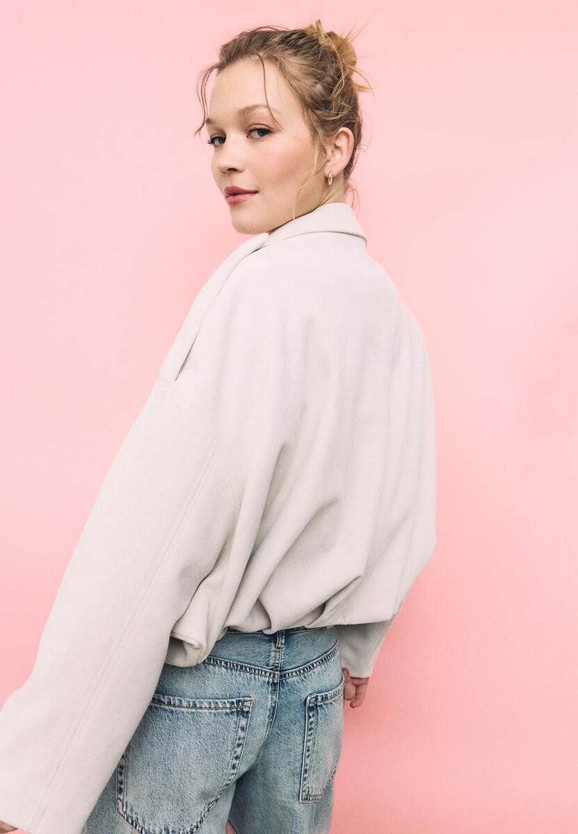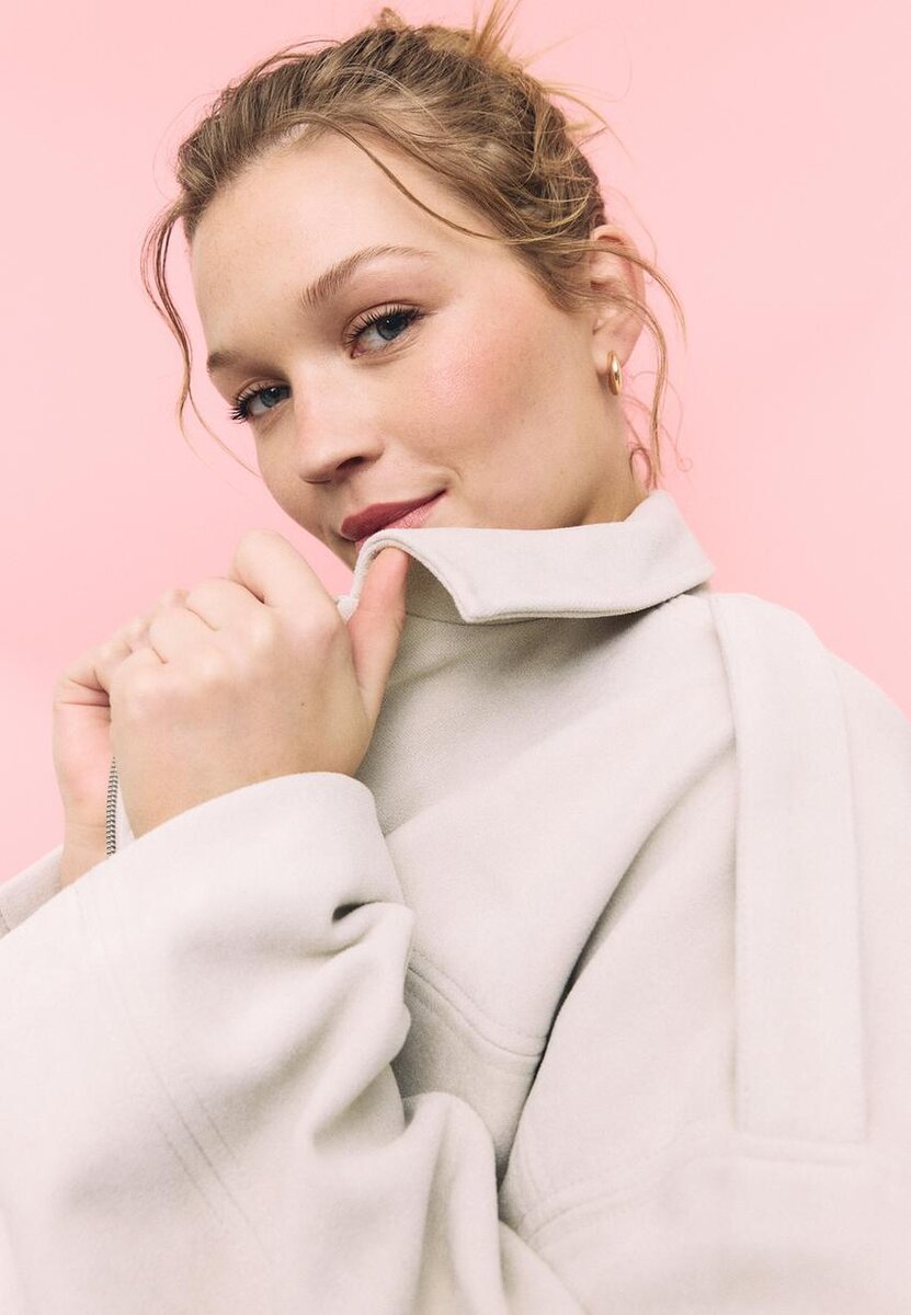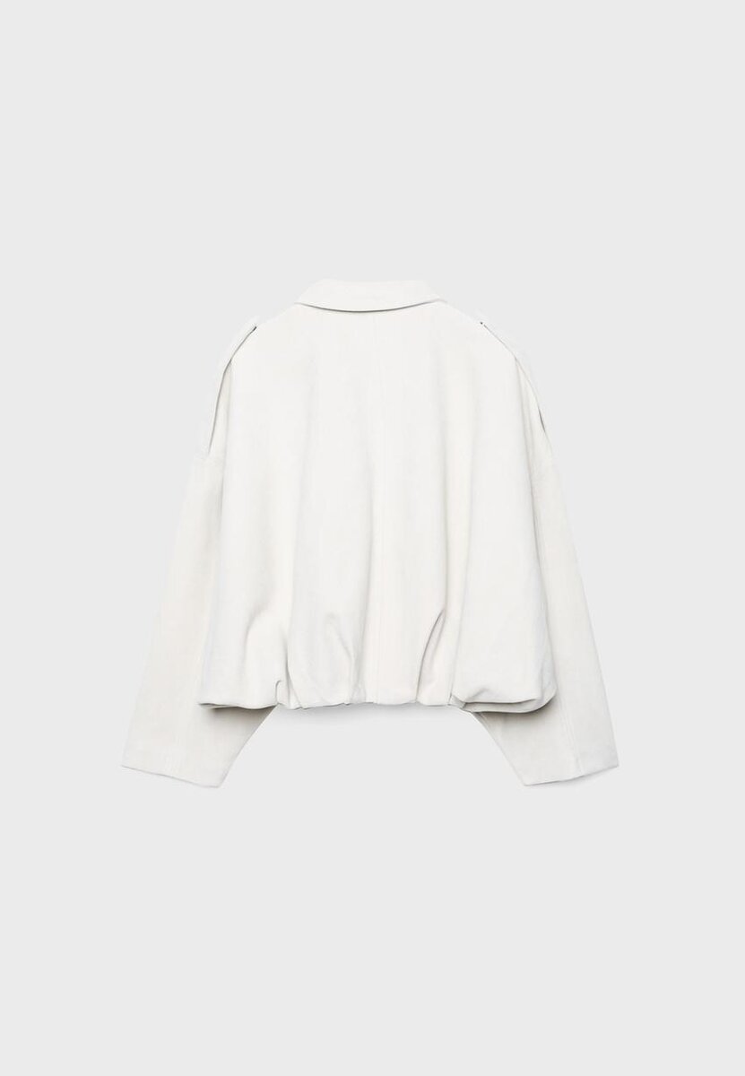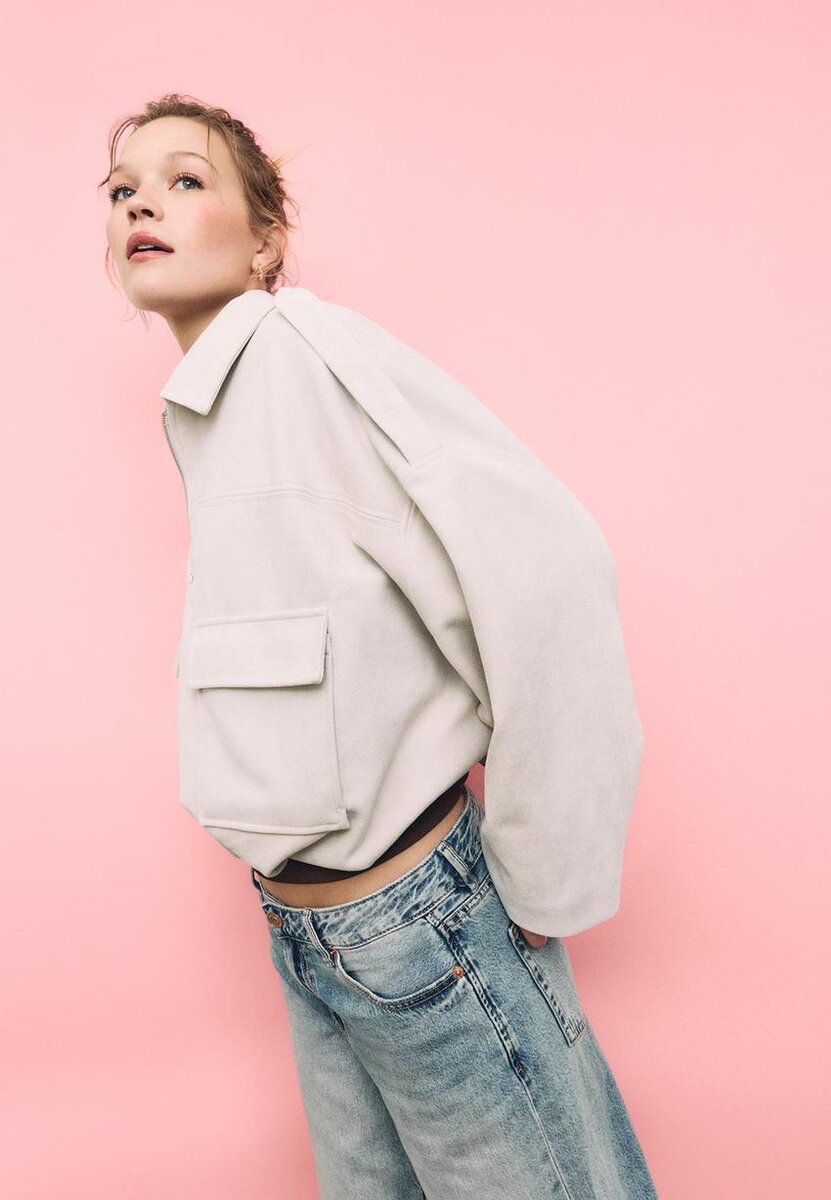 Bunda z umělé semišové látky. Střih bomber s klopovým límcem. Dlouhé rukávy a elastický spodní lem. Náprsní kapsy. Zapínání na zip vpředu. Detaily na ramenních nášivkách. K dispozici v různých barvách.