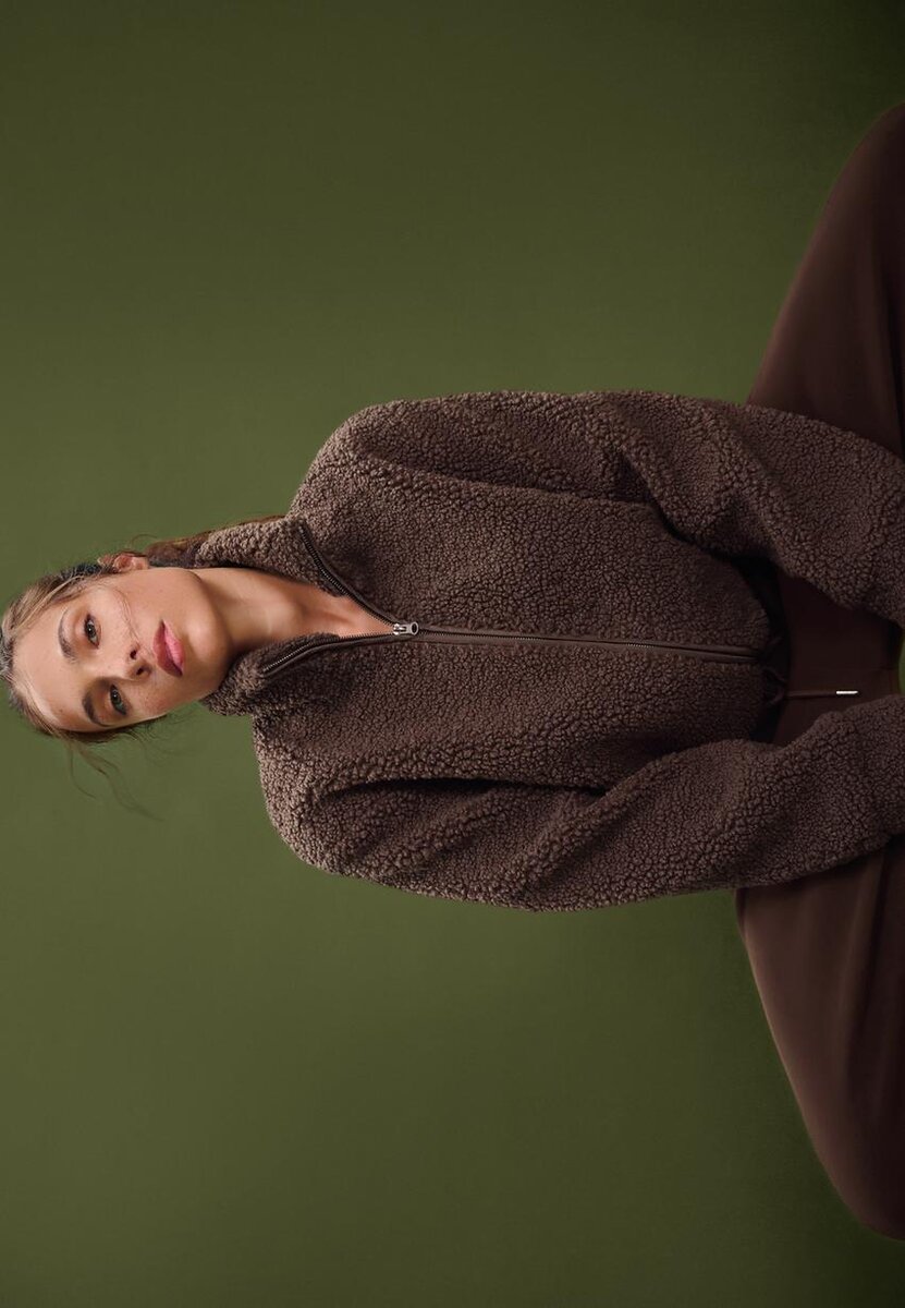 Bunda jemná na dotek vyrobená z látky s podšívkou z umělé ovčí kůže. Vysoký límec a dlouhé rukávy s manžetami. Boční kapsy s lemováním. Nastavitelný spodní lem s elastickými stahovacími šňůrkami a zarážkami. Zapínání na zip vpředu. K dispozici v několika barvách.