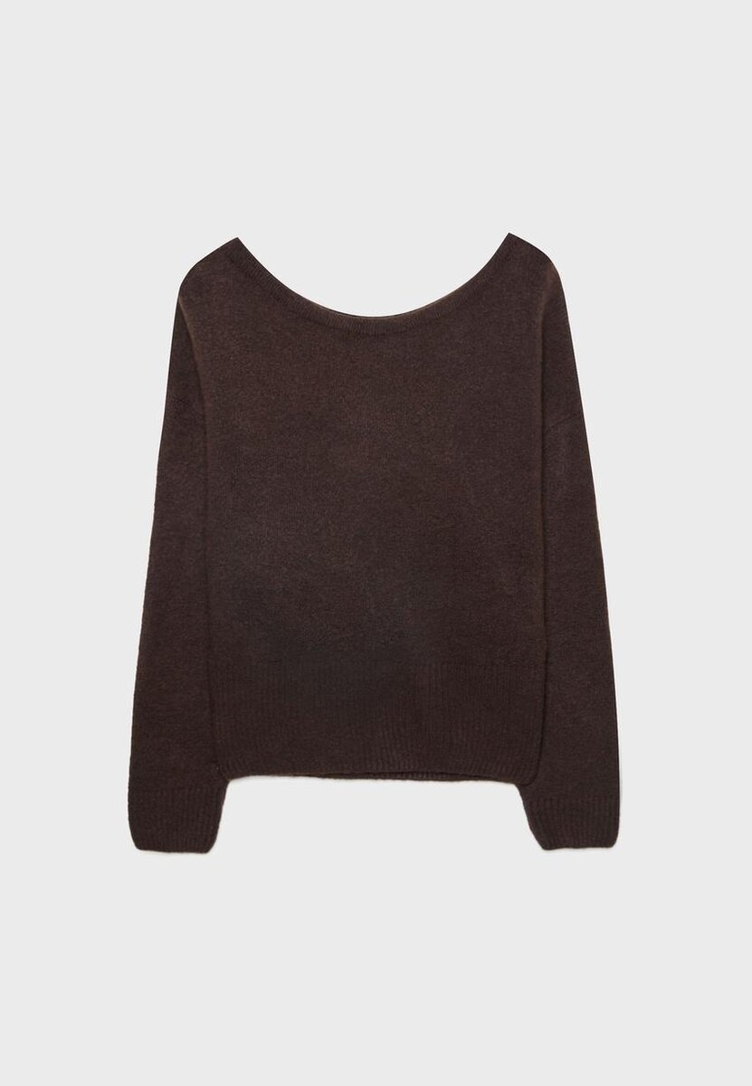 Pletený svetr s výstřihem do lodičky a povrchem Jemné na dotek