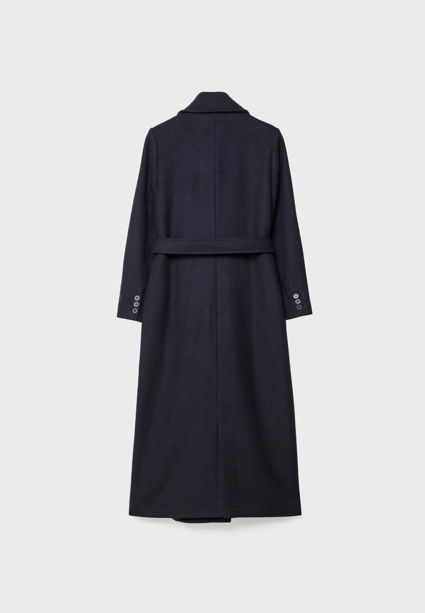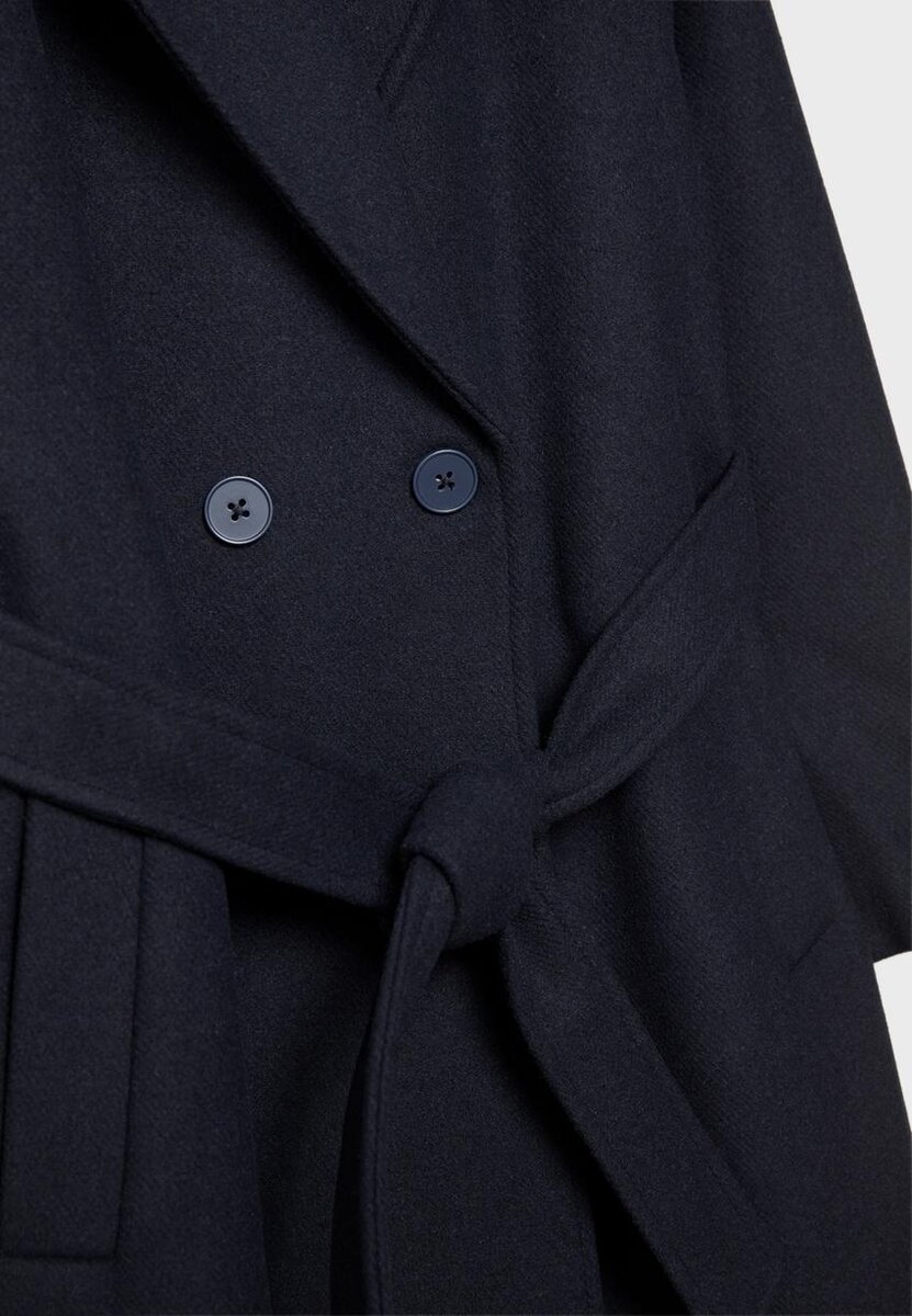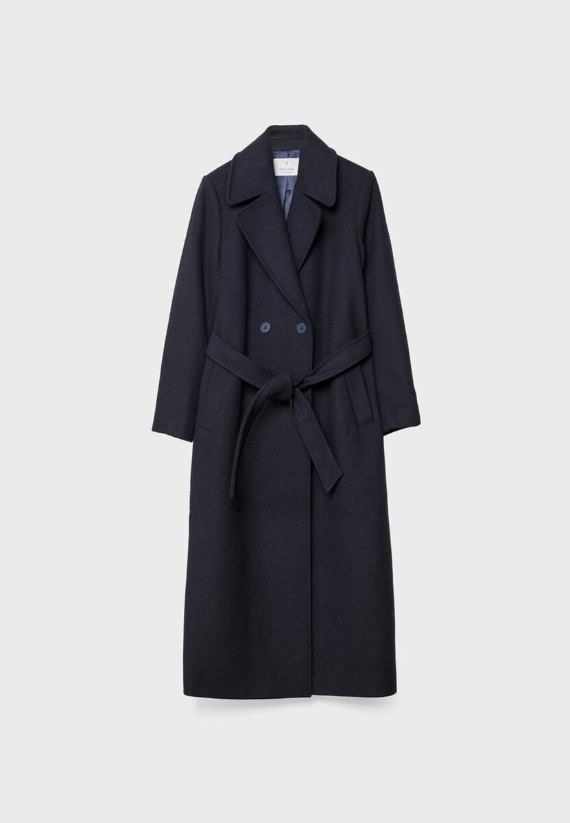Dlouhý trenčkot jemný na dotek. Límec s klopami a dlouhé rukávy s knoflíky. Boční kapsy s lemováním. Dvouřadé zapínání na knoflíky vpředu a pásek ze stejné látky. K dispozici v několika barvách.