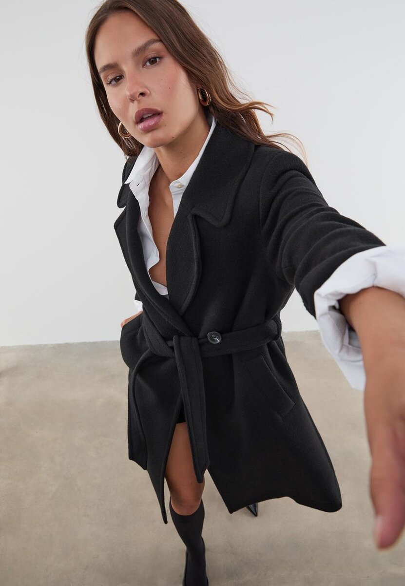 Kabát s plstěnou texturou a páskem