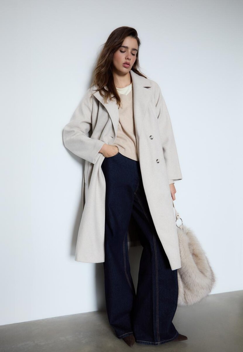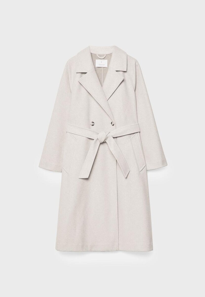 Dlouhý trenčkot Jemný na dotek s klopovým límcem a dlouhými rukávy. Boční kapsy. Dvouřadé zapínání s kontrastními knoflíky a barevným páskem. K dispozici v několika barvách.