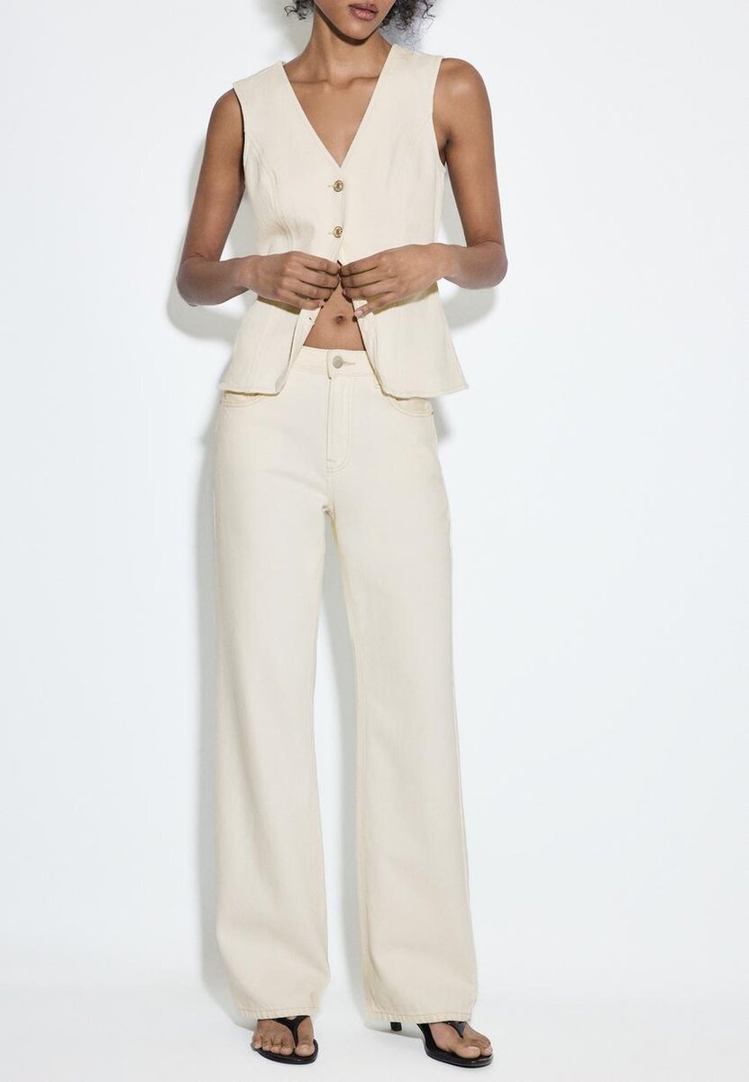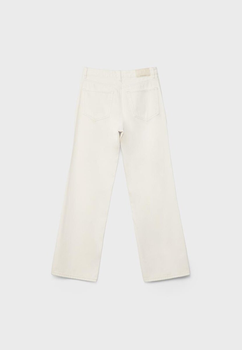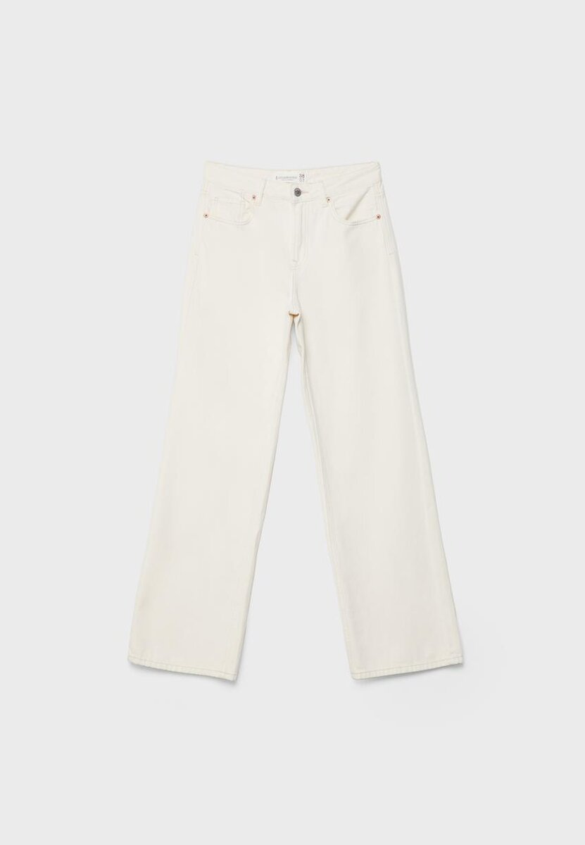 Džíny s vysokým pasem, rovným střihem a širokými nohavicemi, s předními kapsami. Nášivkové kapsy na zadní straně. Pas s poutky na pásek. Rovný, Wide Leg. Zapínání na zip vpředu a kovové knoflíky. K dispozici v různých barvách.