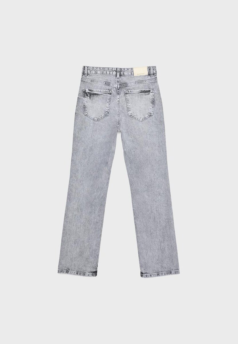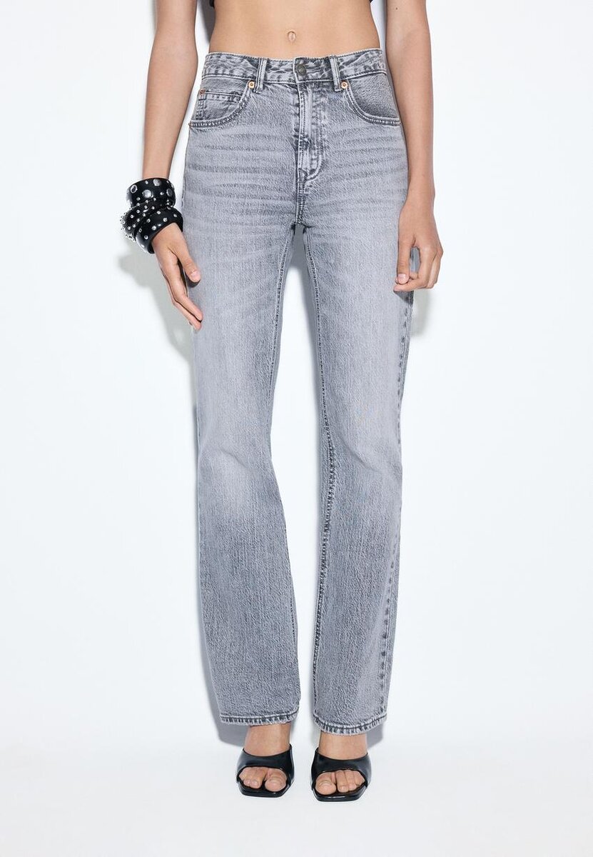 Džíny s rovnými nohavicemi a středně vysokým pasem s designem pěti kapes. Zapínání na zip a kovový knoflík. K dispozici v různých barvách. Střih: Normální pas až k pupku