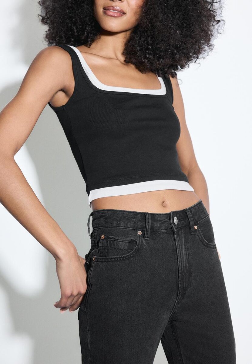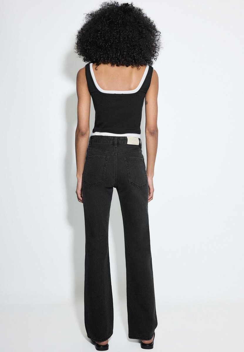 Džíny s rovnými nohavicemi a středním pasem s designem pěti kapes. Zapínání na zip a kovový knoflík. K dispozici v různých barvách. Střih: Normální pas až k pupku