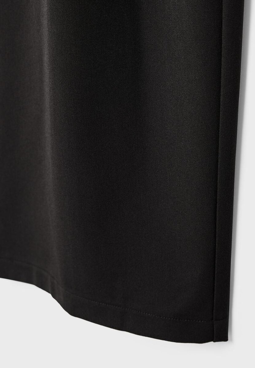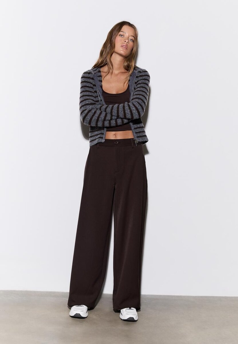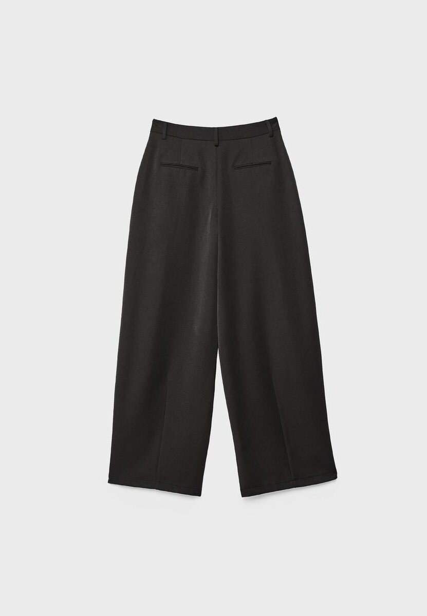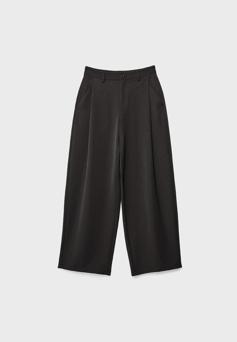 Elegantní kalhoty Barrel se středním pasem a poutky na pásek. Boční kapsy a falešné zadní kapsy s lemem. S předními záševky. Široké a rovné nohavice. Zapínání na zip a knoflík vpředu. K dispozici v několika barvách.