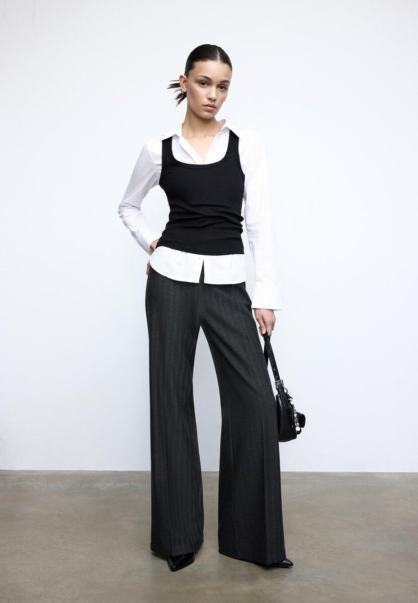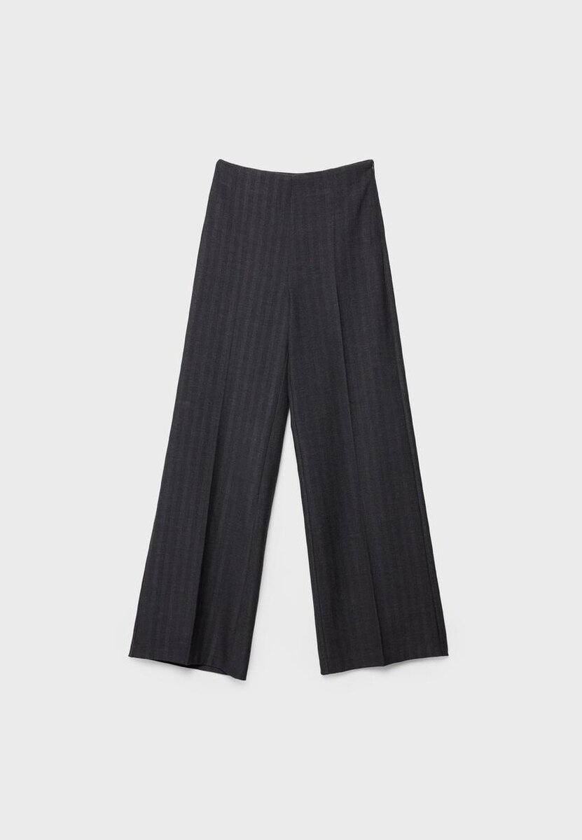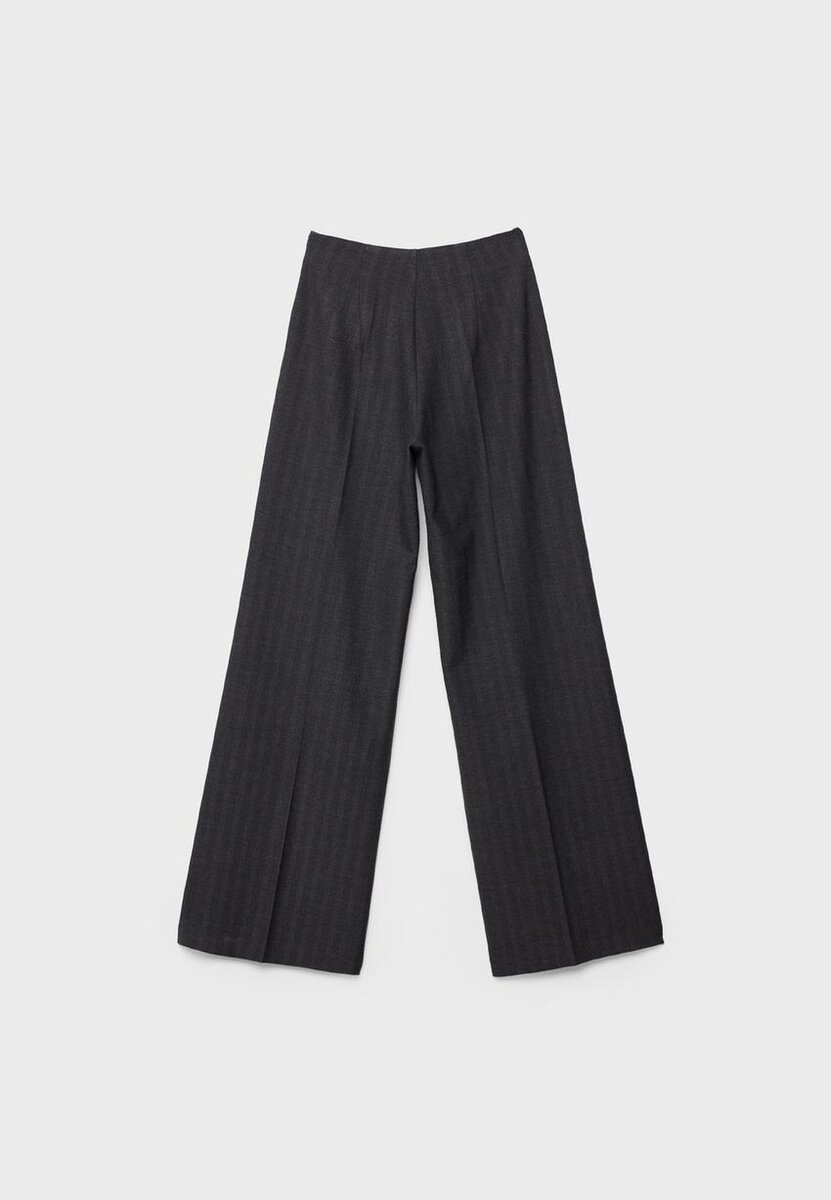 Volné kalhoty s vysokým pasem a rovnými nohavicemi. Boční zapínání na skrytý zip v švu. K dispozici v různých barvách.