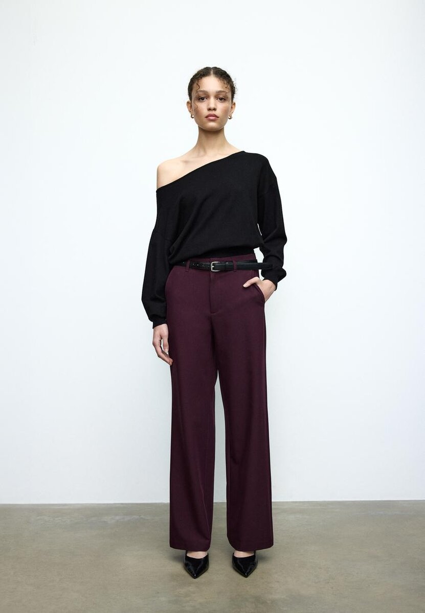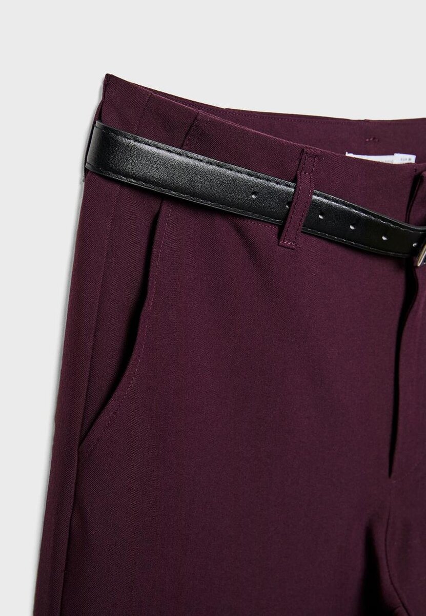 Volné kalhoty s vysokým pasem a poutky na opasek. S předními kapsami, falešnými kapsami s lemováním vzadu, rovným střihem nohavic, odnímatelným páskem s kovovou sponou a kovovým háčkem, vnitřním zapínáním na knoflík a zip vpředu. K dispozici v různých barvách.Petite & Tall