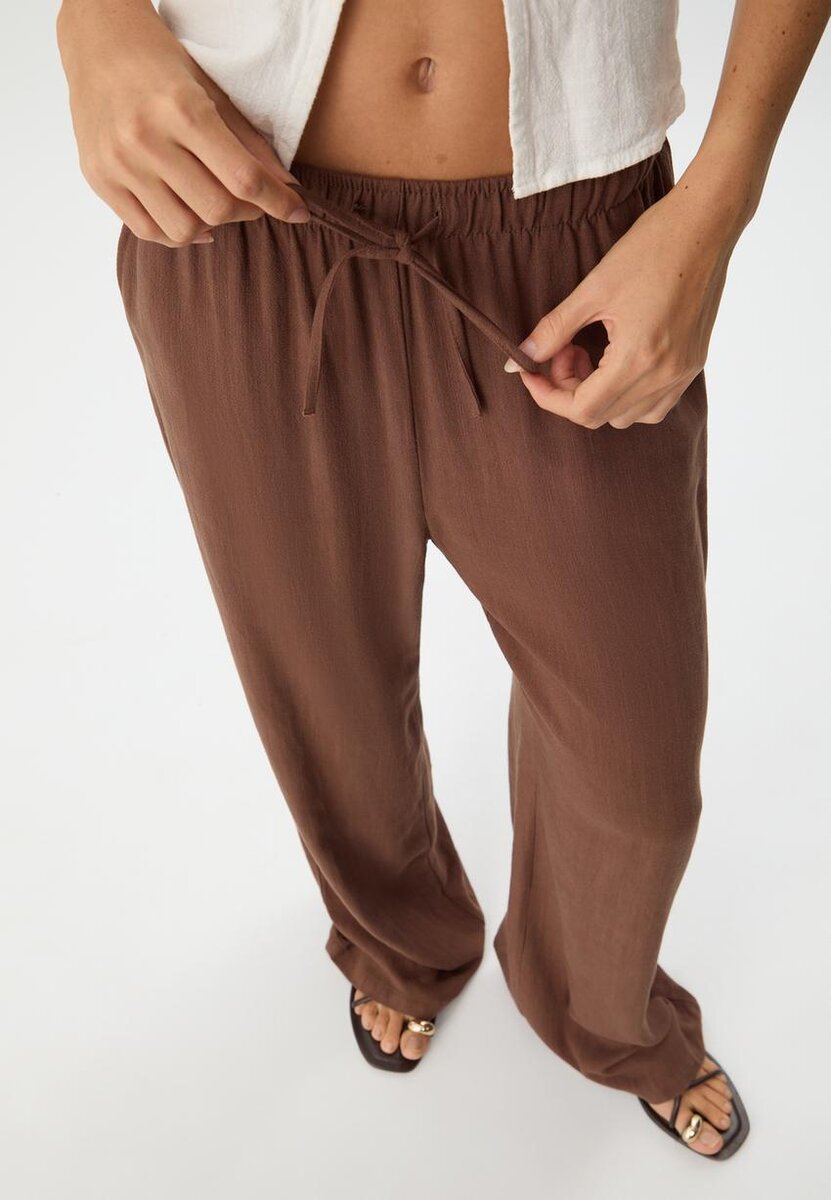 Vlající kalhoty s efektem lnu ve Stradivarius za pouhých 35,9 $ K dispozici po omezenou dobu. Dámské kalhoty, které jsou vždy v módě, přijďte a objevte je hned teď!