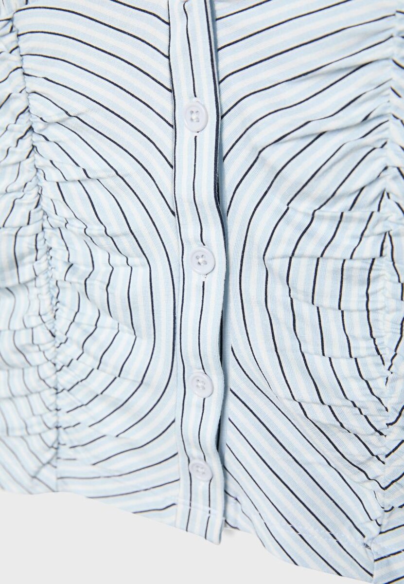 Nařasená košile s krátkými rukávy ve Stradivarius za pouhých 35,9 $ K dispozici pouze po omezenou dobu. Mocacos Nuevo pro ženy Vždy v trendu, přijďte a objevte to hned teď!