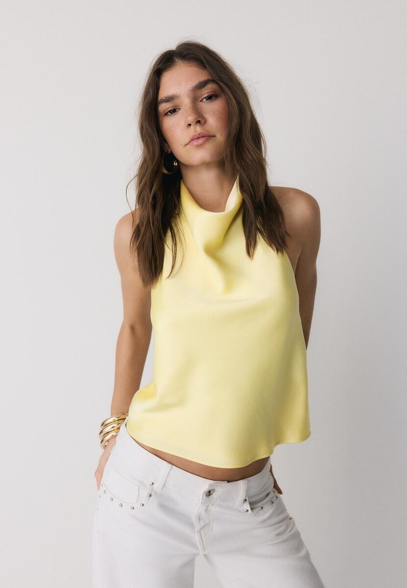 Top s halter výstřihem se saténovým efektem