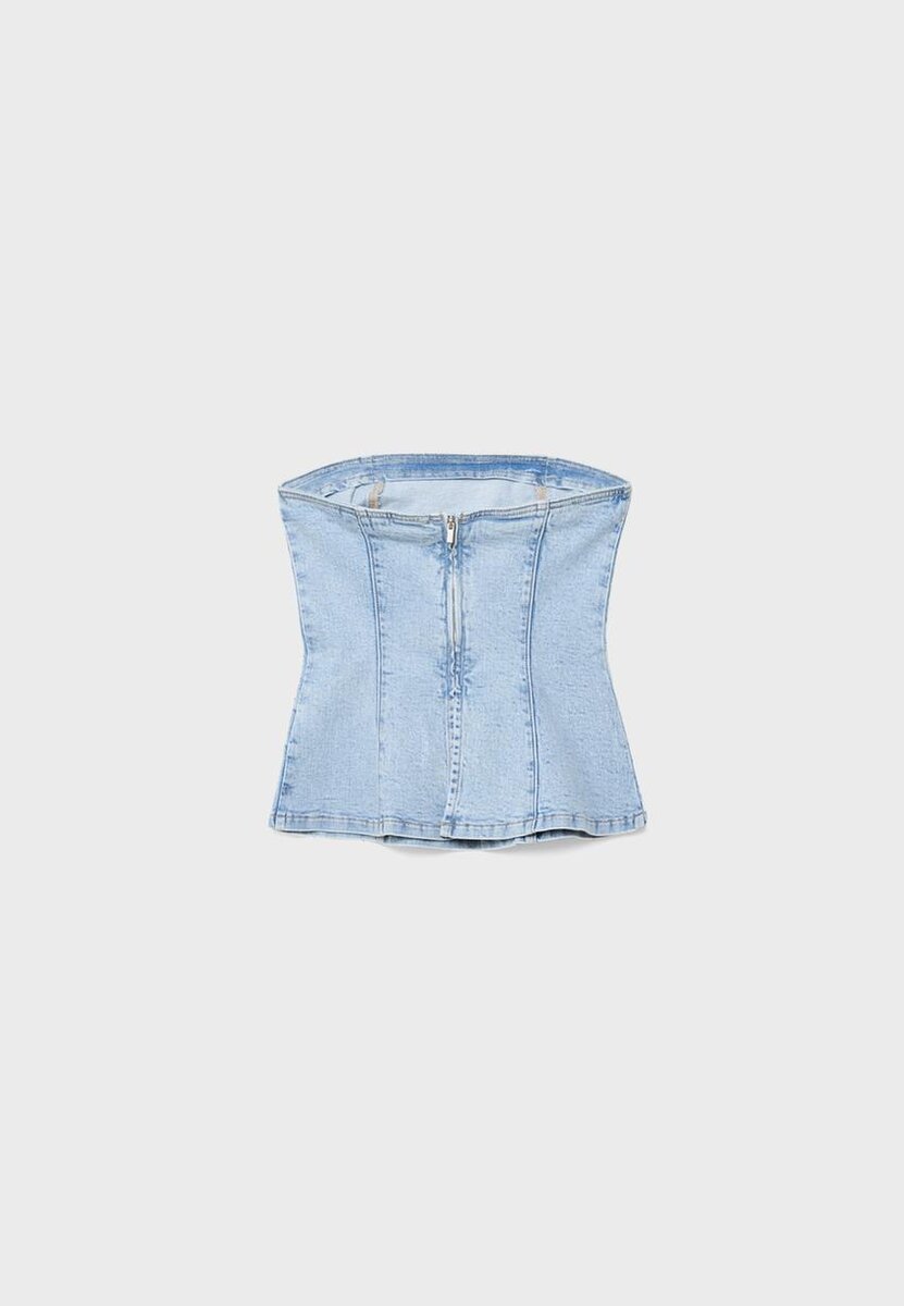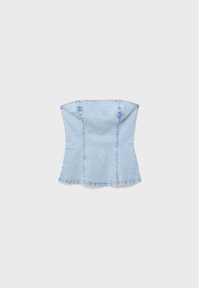 Třpytivý džínový top bez ramínek ve Stradivarius za pouhých 45,9 $ K dispozici po omezenou dobu. Null pro ženy Vždy v trendu, přijďte a zjistěte to hned teď!