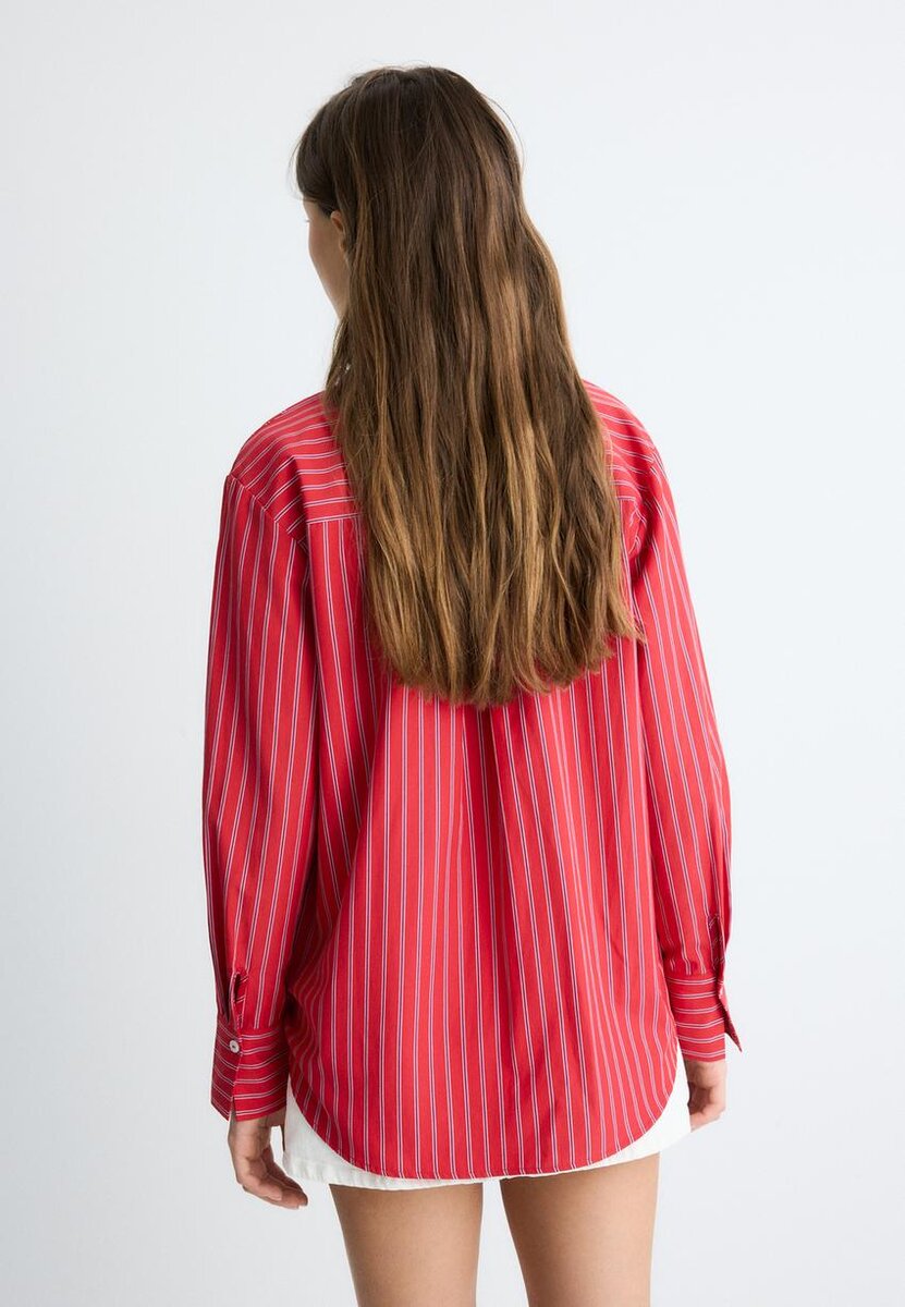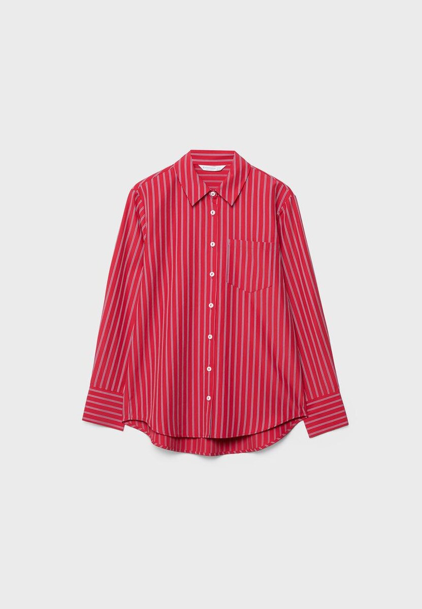 Basic popelínová košile s límečkem a dlouhými rukávy. Má zapínání na knoflíky u manžet a vpředu. K dispozici v různých barvách.