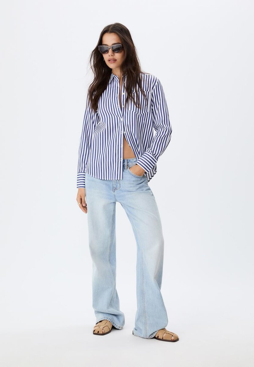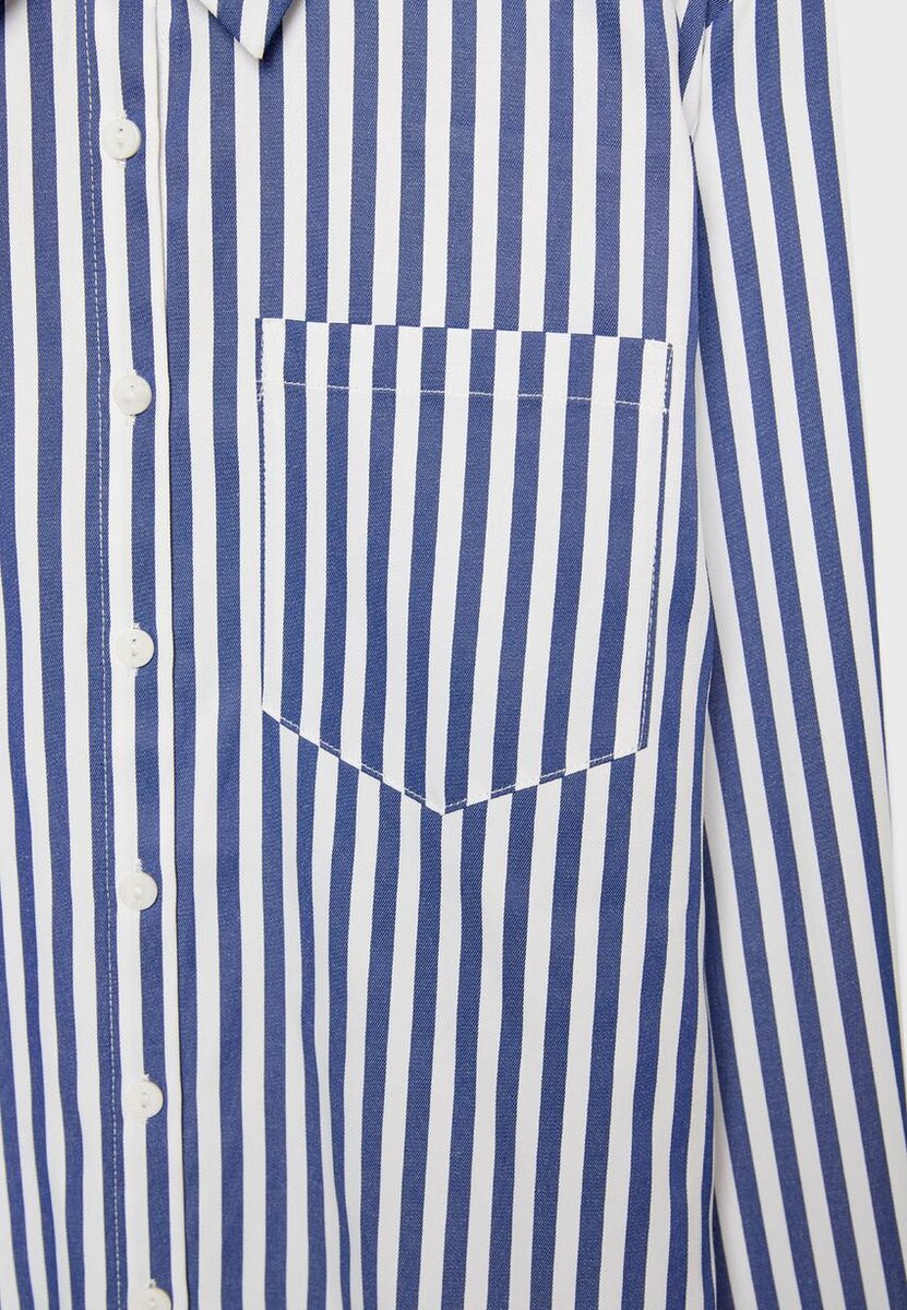 Košile s rovným střihem, límečkem, dlouhými rukávy a manžetami na knoflíky. S náprsní kapsou, asymetrickým lemem a zapínáním na knoflíky vpředu.