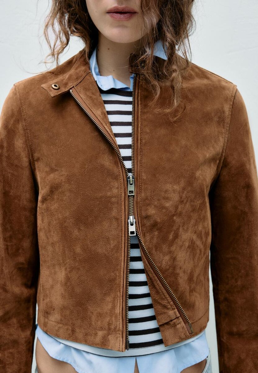 100% kožená motorkářská bunda ve Stradivarius za pouhých 129 $ k dispozici po omezenou dobu. Mocacos Nuevo pro ženy vždy v trendu, přijďte a zjistěte to hned!