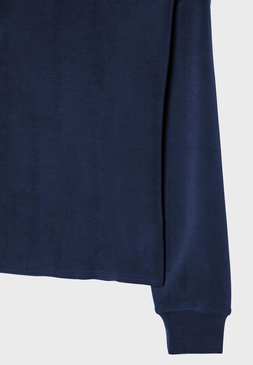 Jemná a splývavá mikina. Asymetrický výstřih s odhalenými rameny a dlouhými rukávy. K dispozici v různých barvách.