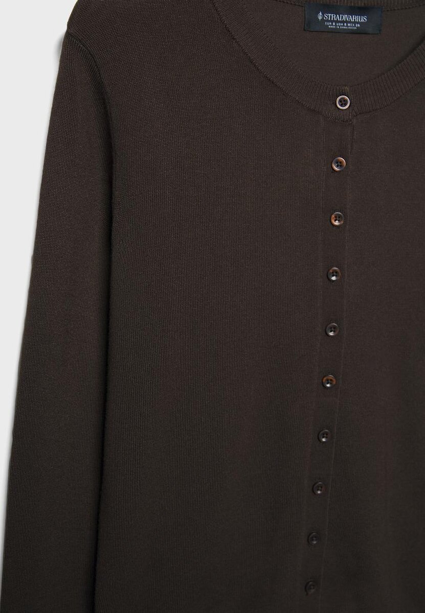Pletený kardigan s kulatým výstřihem a dlouhými rukávy, regular fit. Žebrované lemy u výstřihu a manžet. Zapínání na knoflíky vpředu v tónu k tónu. K dispozici v několika barvách.