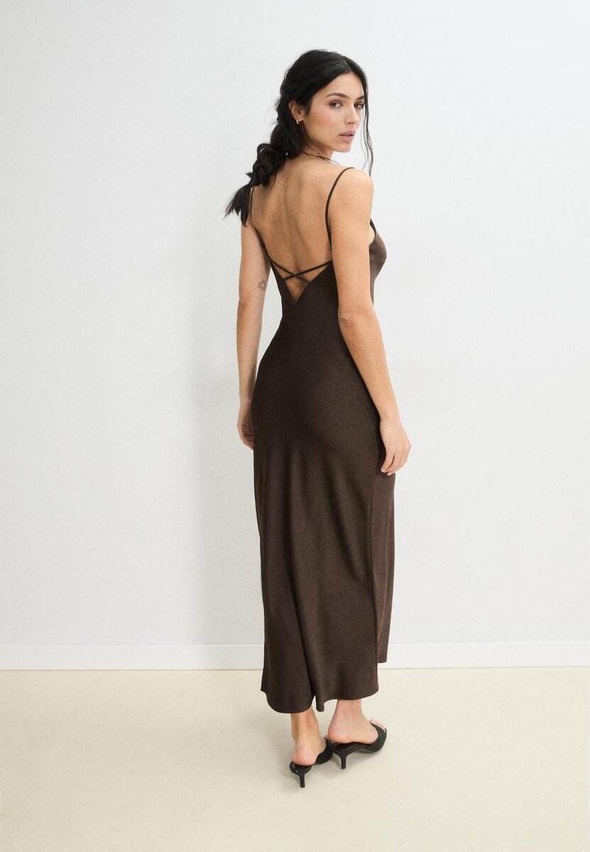 Saténové midi šaty ve Stradivarius za pouhých 45,9 $ K dispozici po omezenou dobu. Novinky pro ženy od Mocacos Vždy v trendu, přijďte a objevte je hned teď!