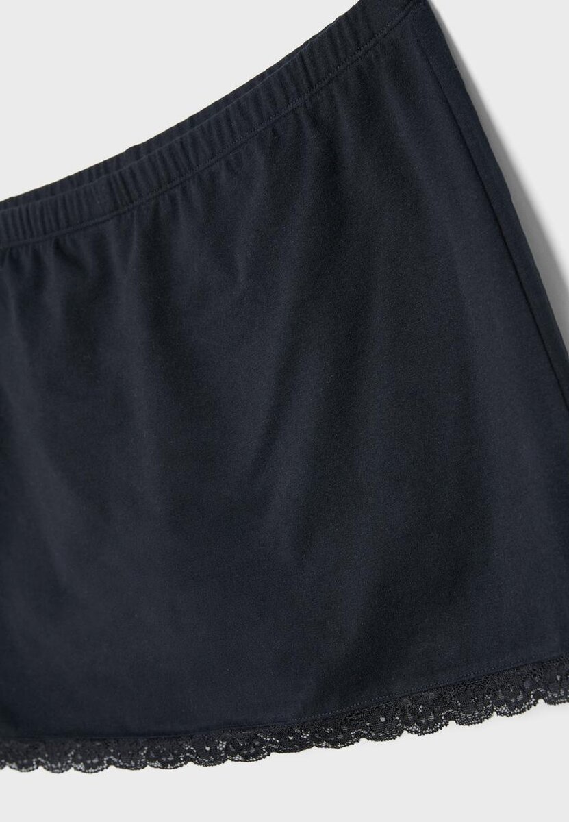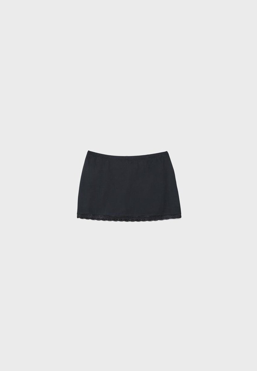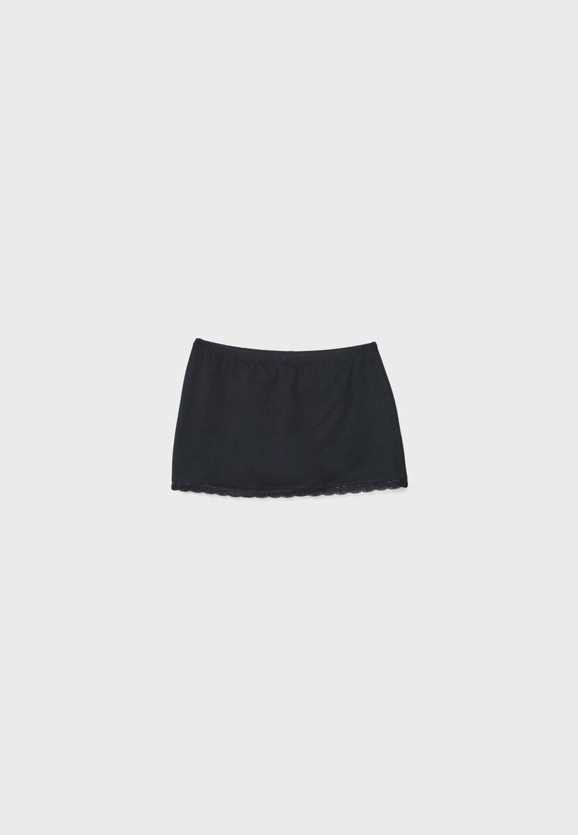 Skort s elastickým pasem a krajkovým lemem. Sladěné vnitřní kraťasy. K dispozici v různých barvách.