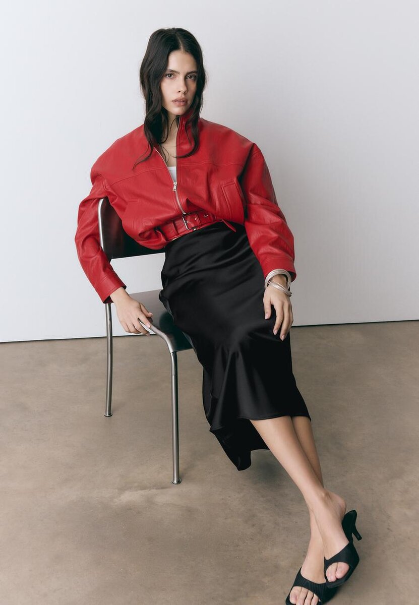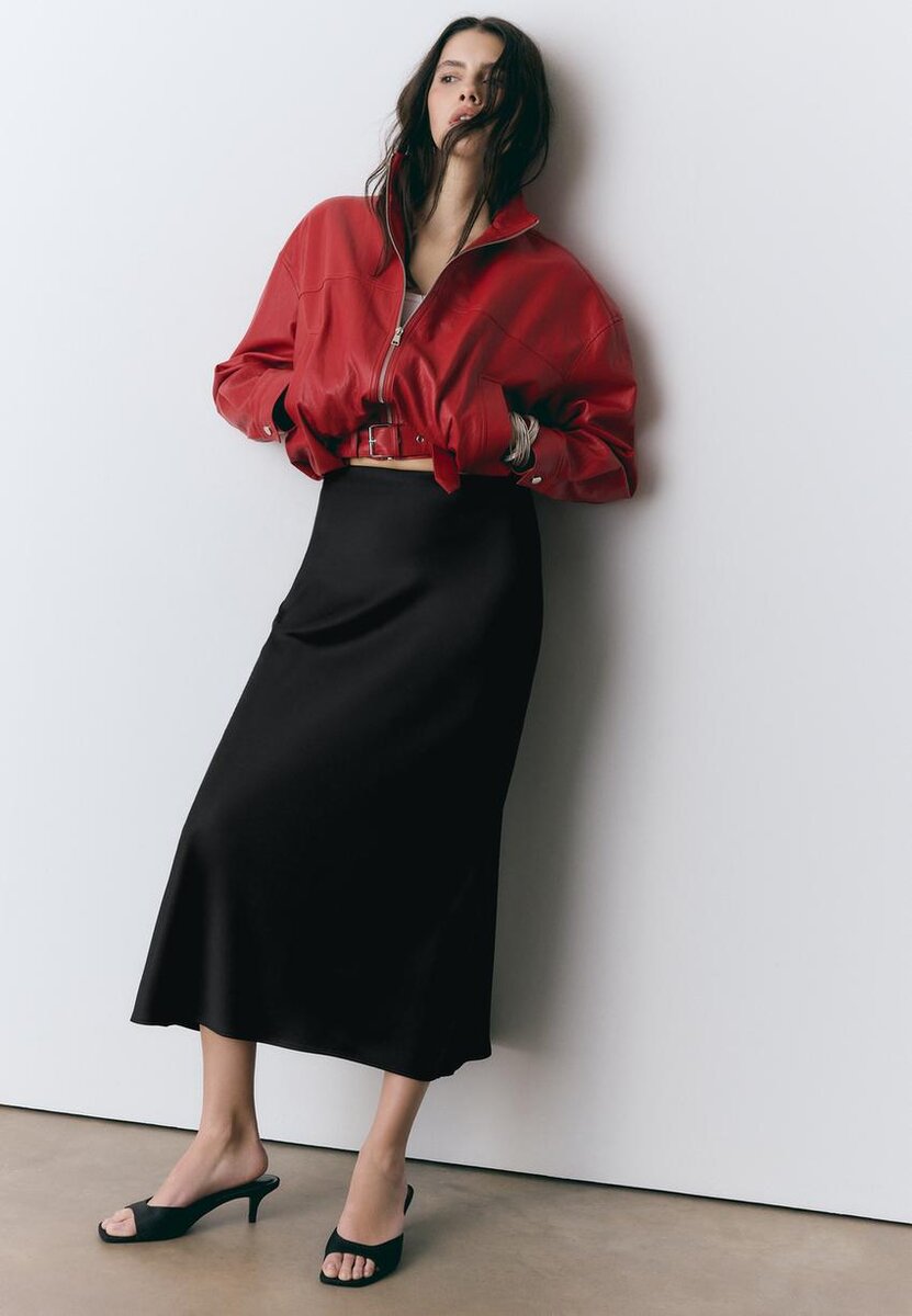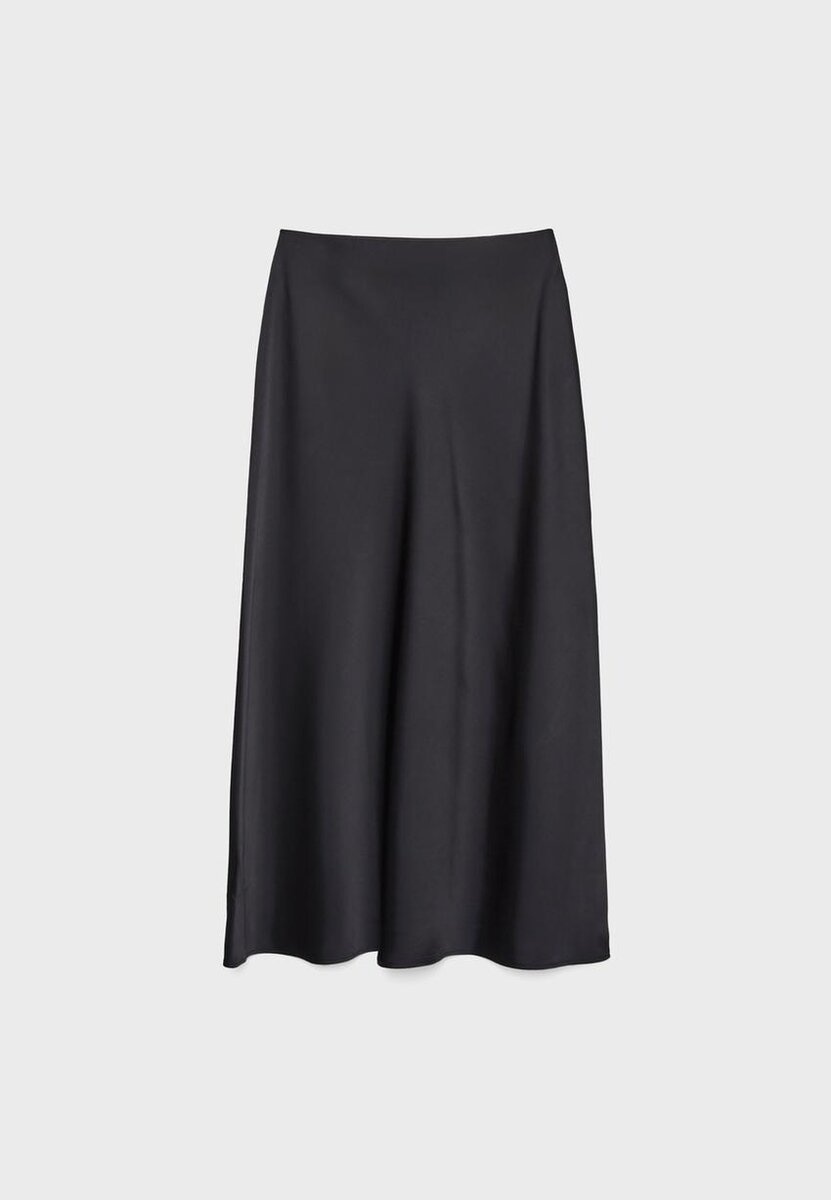 Midi sukně se středním pasem z látky se saténovým efektem. K dispozici v několika barvách.