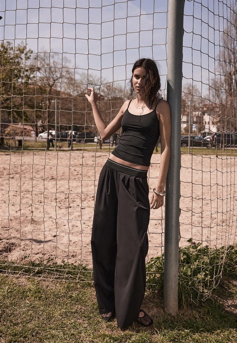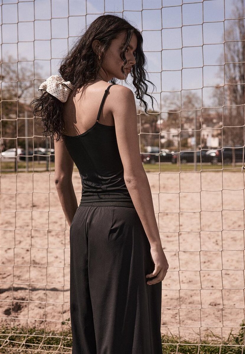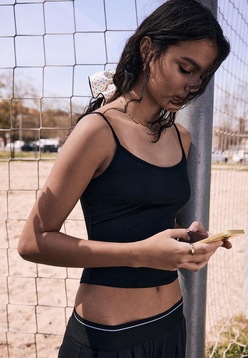 Přiléhavé tílko s kulatým výstřihem a tenkými nastavitelnými ramínky. K dispozici v několika barvách.