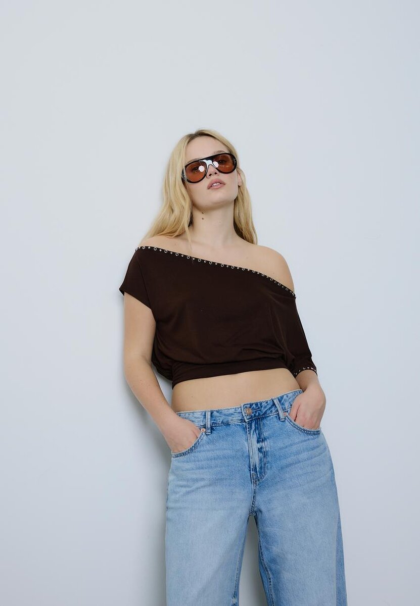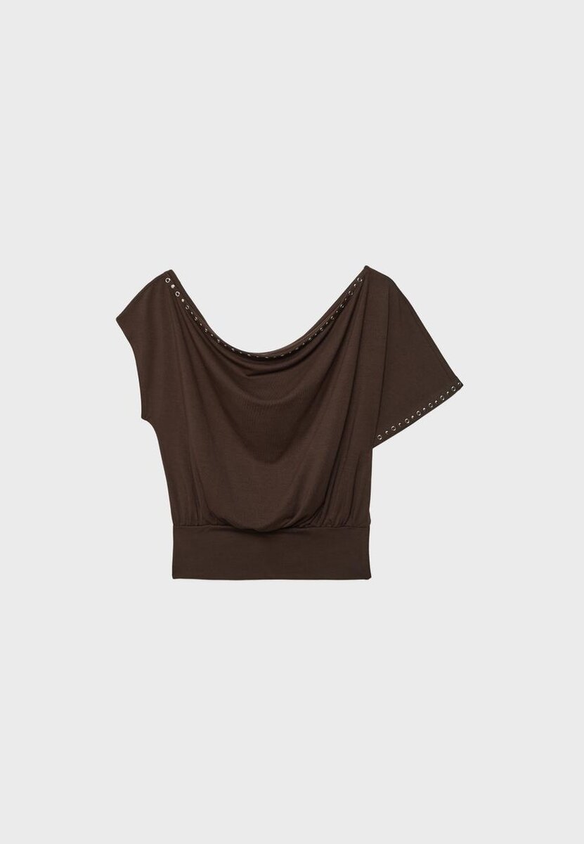 Asymetrické tričko s cvočky ve Stradivarius za pouhých 29,9 $ K dispozici pouze po omezenou dobu. Mocacos Nuevo pro ženy Vždy v trendu, přijďte a objevte to hned teď!