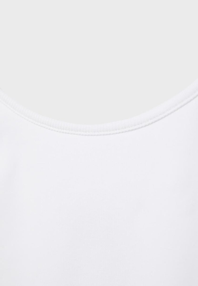 Top ze směsi bavlny. Přiléhavý střih. Kulatý výstřih a ramínka. Žebrovaný vzor. K dispozici v různých barvách.