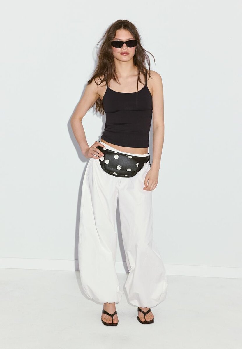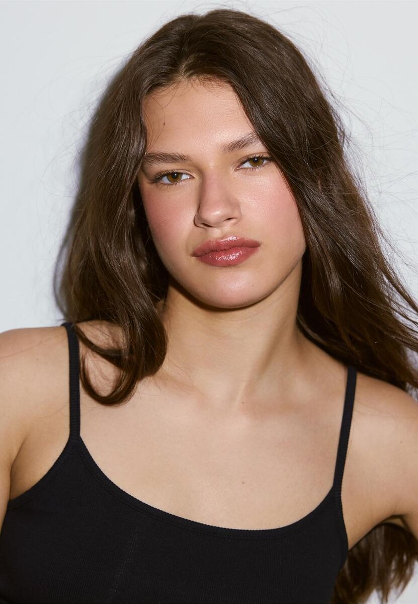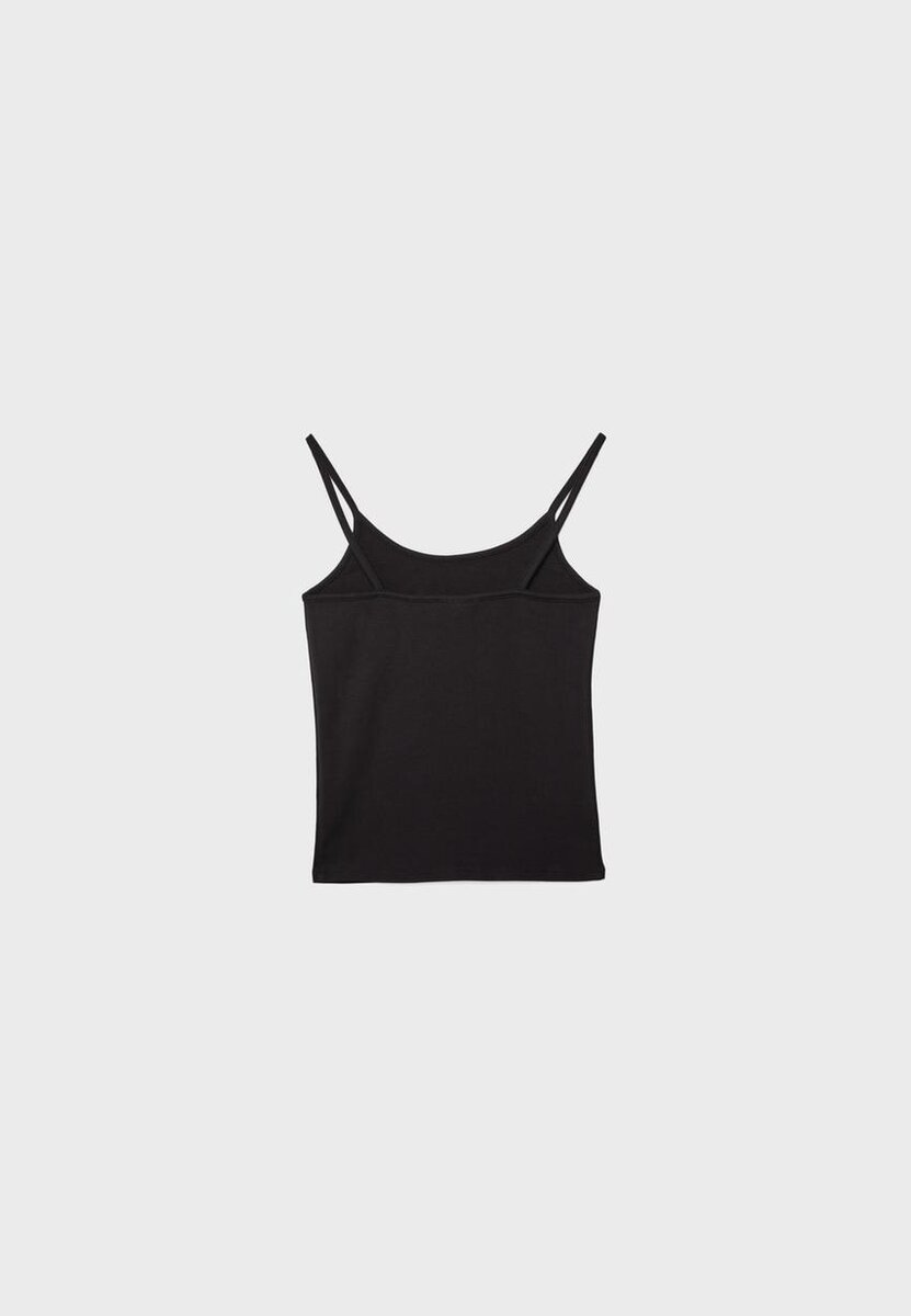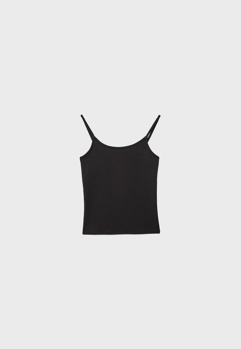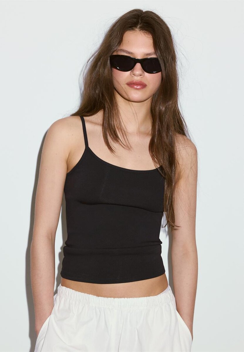 Top ze směsi bavlny. Přiléhavý střih. Kulatý výstřih a ramínka. Detaily s žebrovanou texturou. K dispozici v několika barvách.