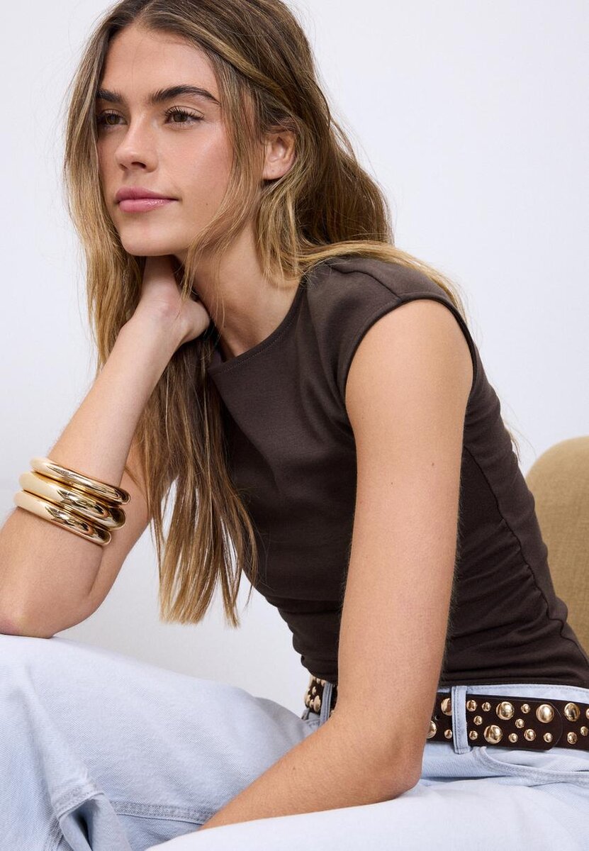Basic přiléhavé tričko se řasením od Stradivarius za pouhých 17,9 $ K dispozici po omezenou dobu. Mix to Win pro ženy Vždy v trendu, přijďte a zjistěte to hned teď!