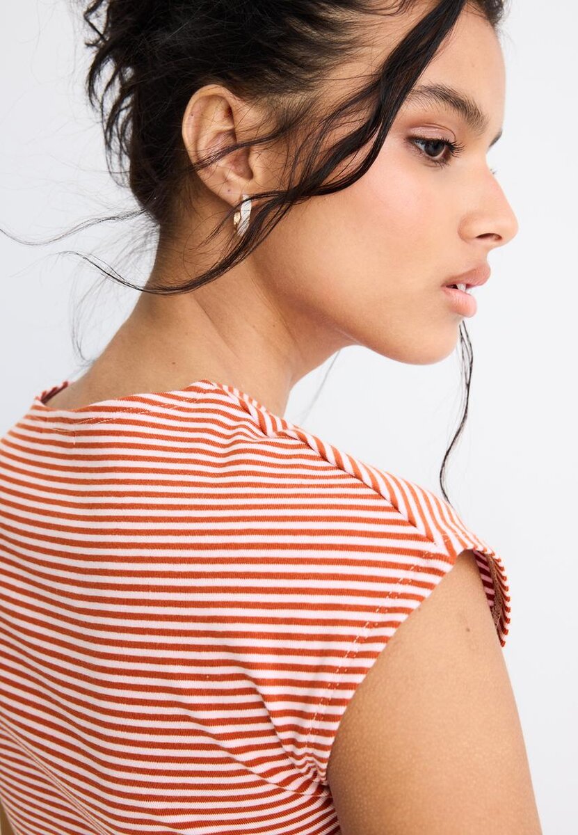 Basic pruhované tričko s krátkými rukávy ve Stradivarius za pouhých 12,9 $ K dispozici po omezenou dobu. Null pro ženy Vždy v trendu, přijďte a zjistěte to hned teď!