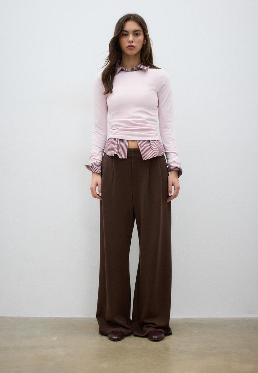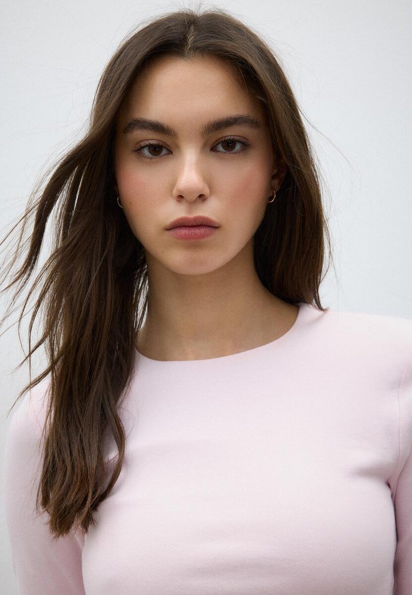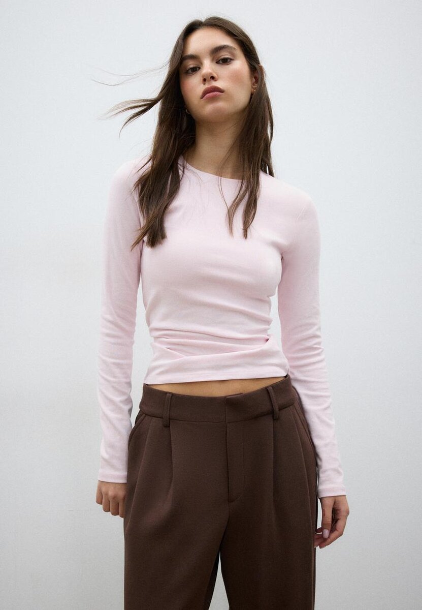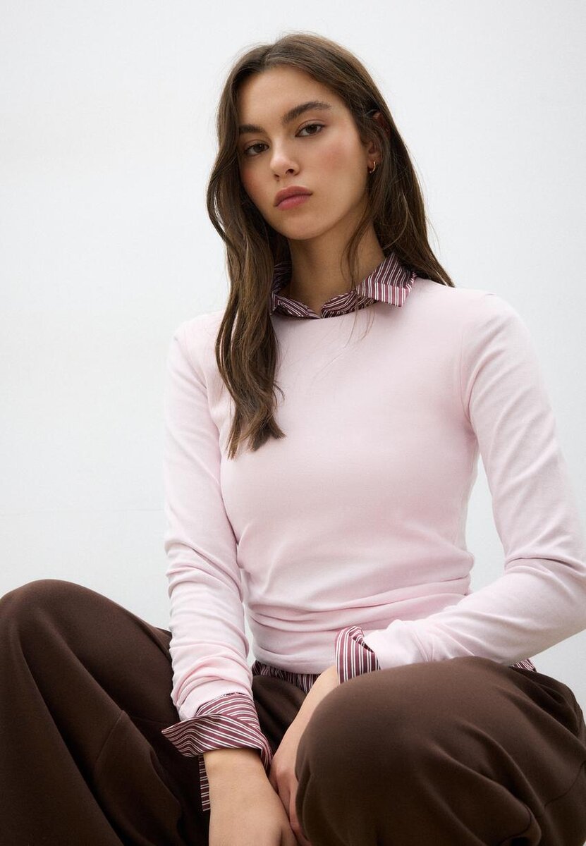 Basic přiléhavé tričko s dlouhým rukávem a kulatým výstřihem. K dispozici v několika barvách.