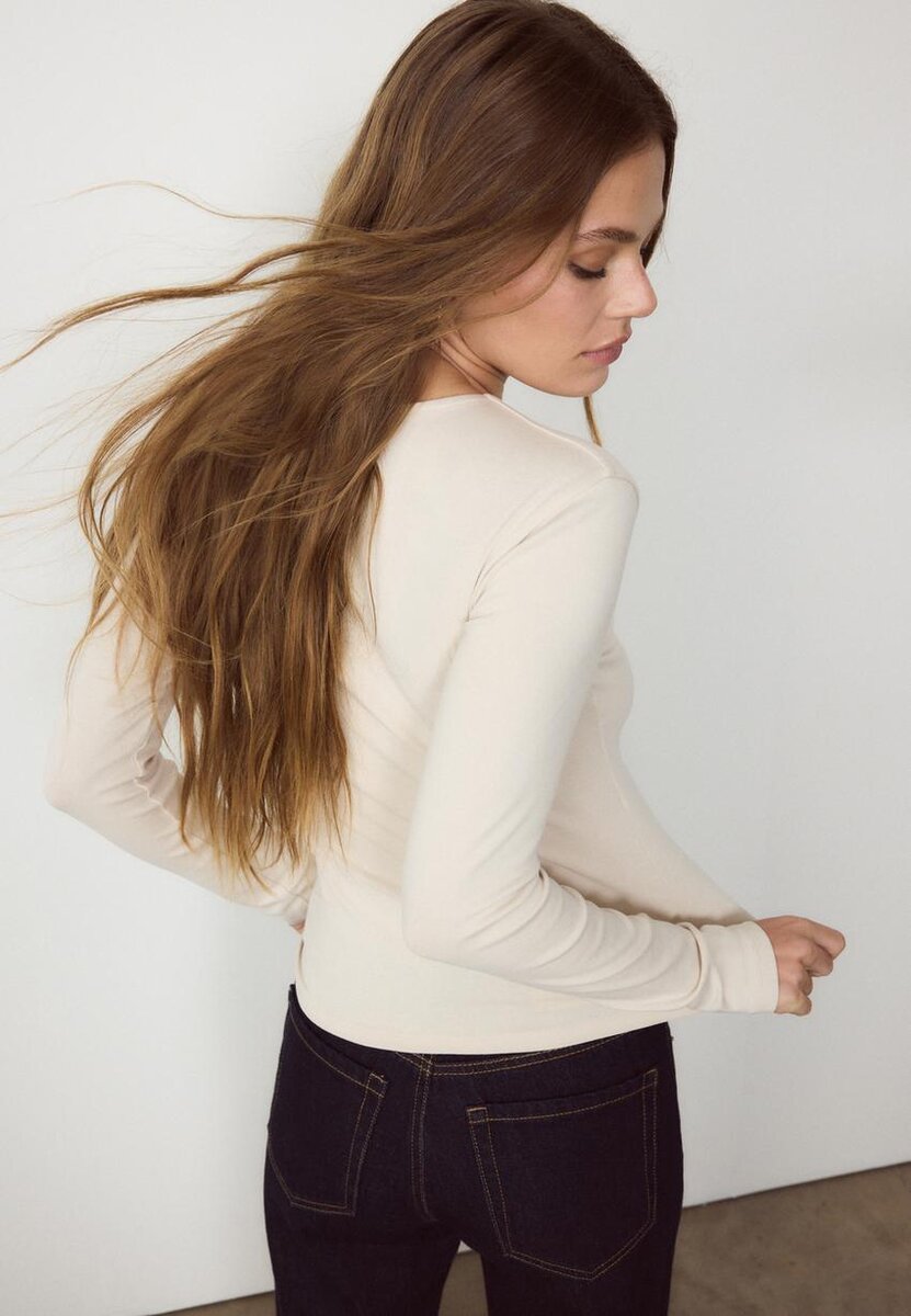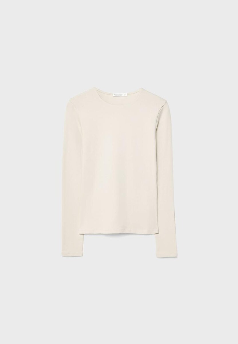 Basic přiléhavé tričko s dlouhým rukávem a kulatým výstřihem. K dispozici v několika barvách.