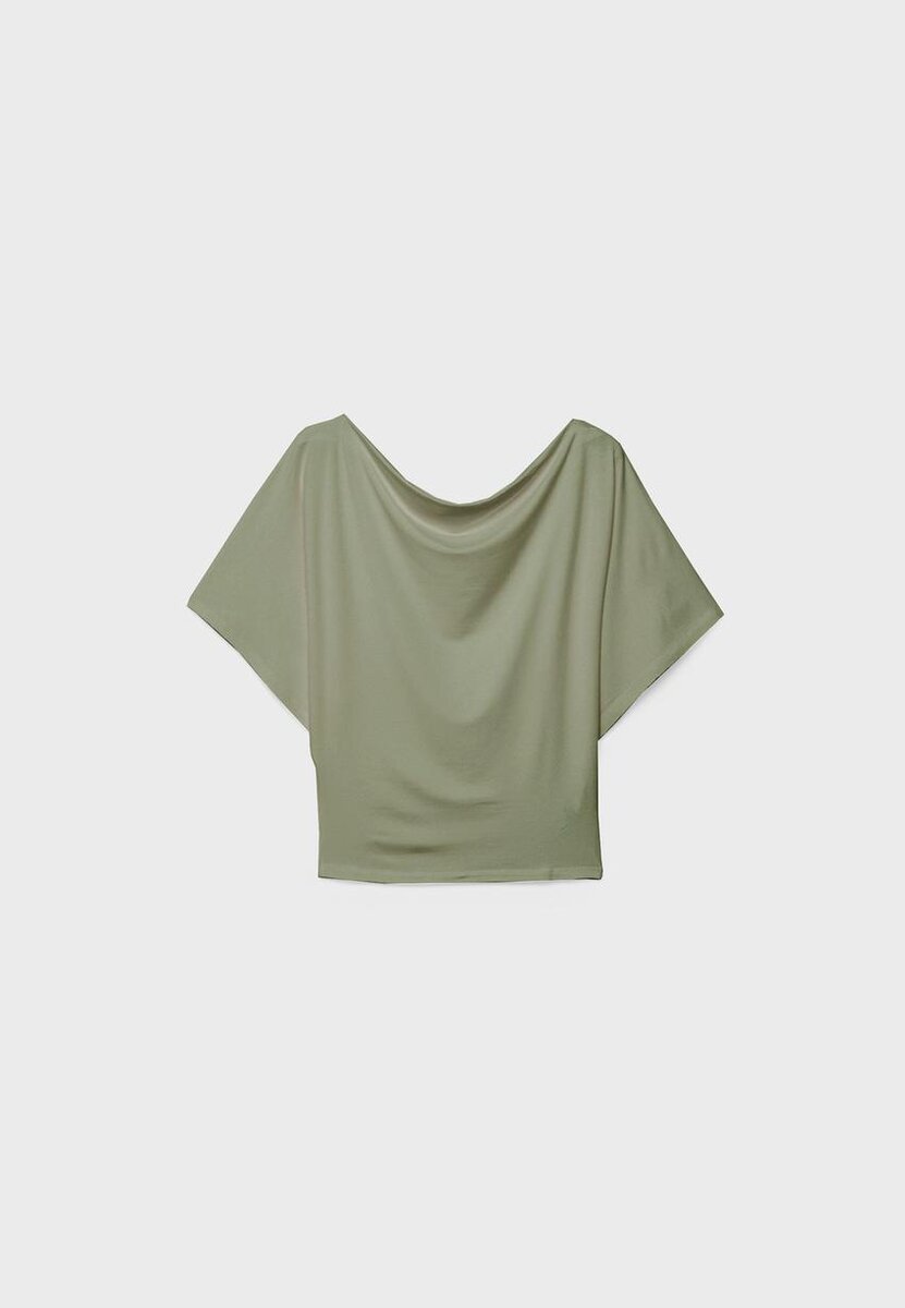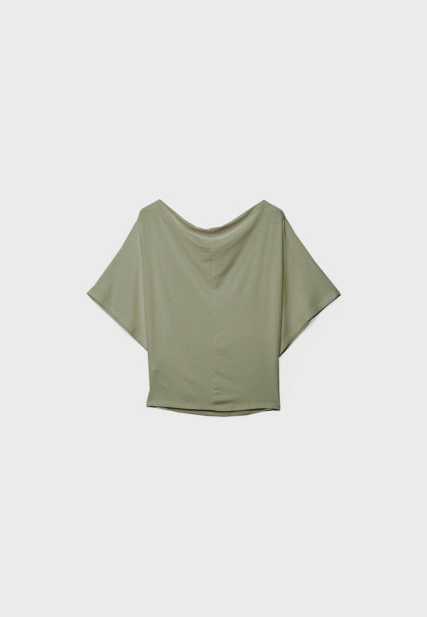 Basic tričko s lodním výstřihem a širokými krátkými netopýřími rukávy. Přiléhavý lem v pase. K dispozici v různých barvách.