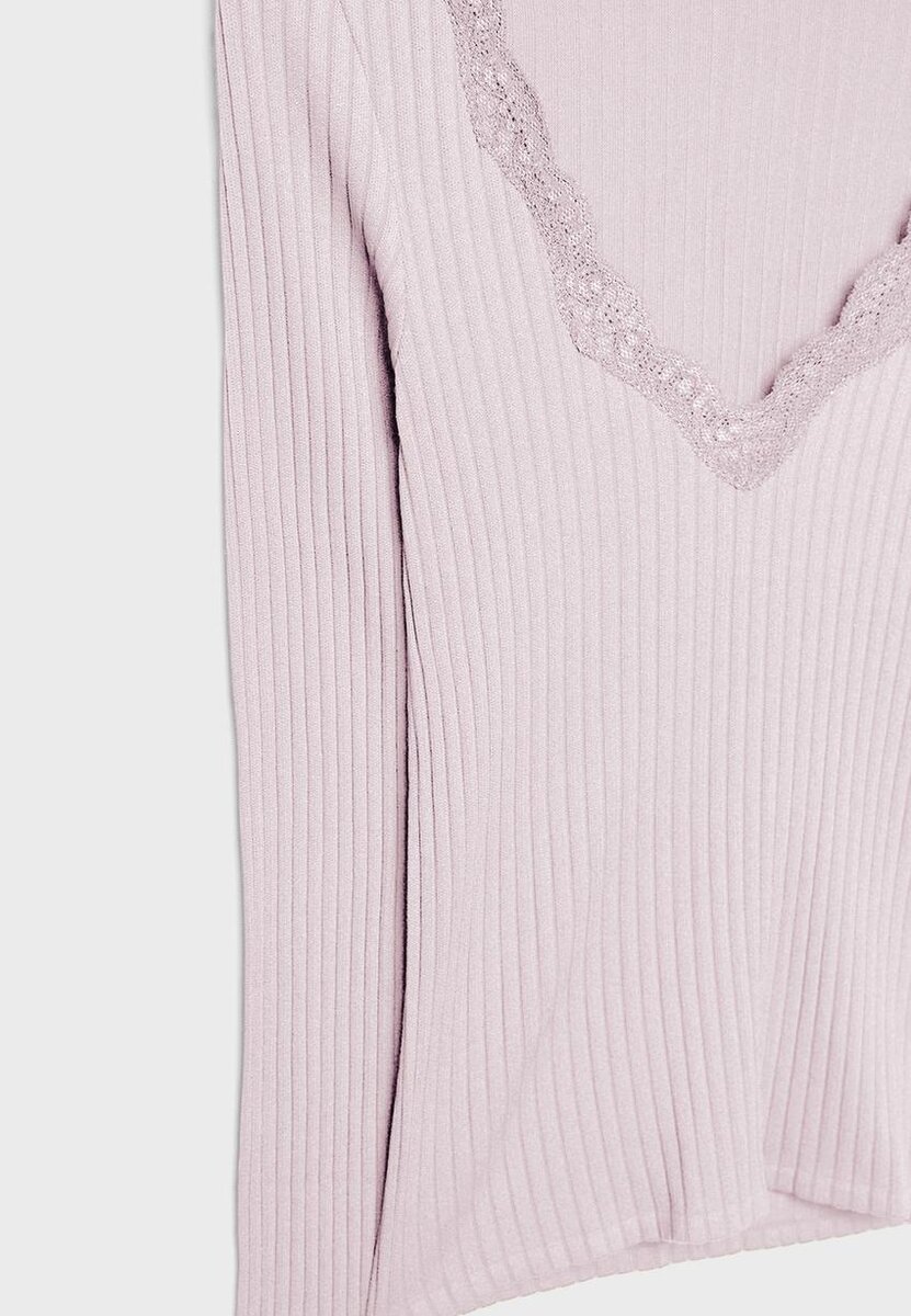 Přiléhavé seamless tričko s výstřihem do V, s ladícími krajkovými detaily a dlouhými rukávy. K dispozici v několika barvách.