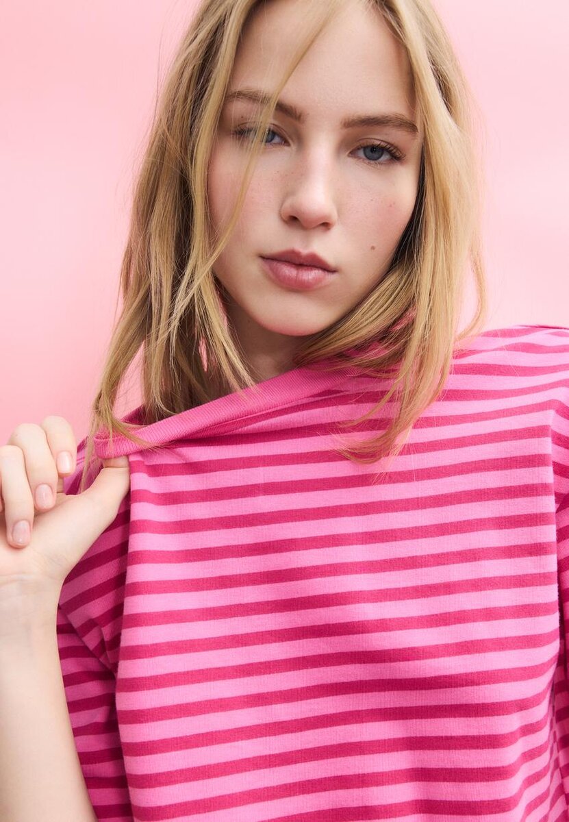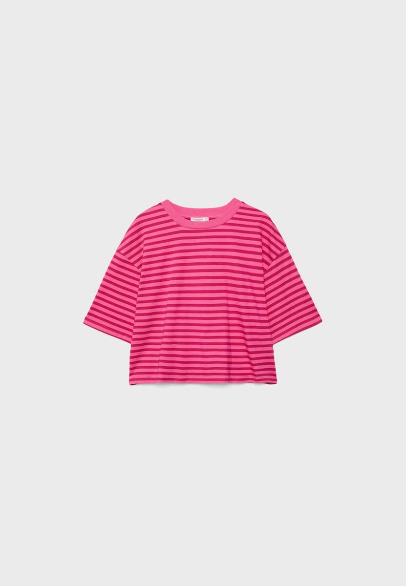 Pruhované tričko s krátkým rukávem ve Stradivarius za pouhých 25,9 $ K dispozici po omezenou dobu. Novinky pro ženy od Mocacos Vždy v trendu, přijďte a objevte je hned teď!
