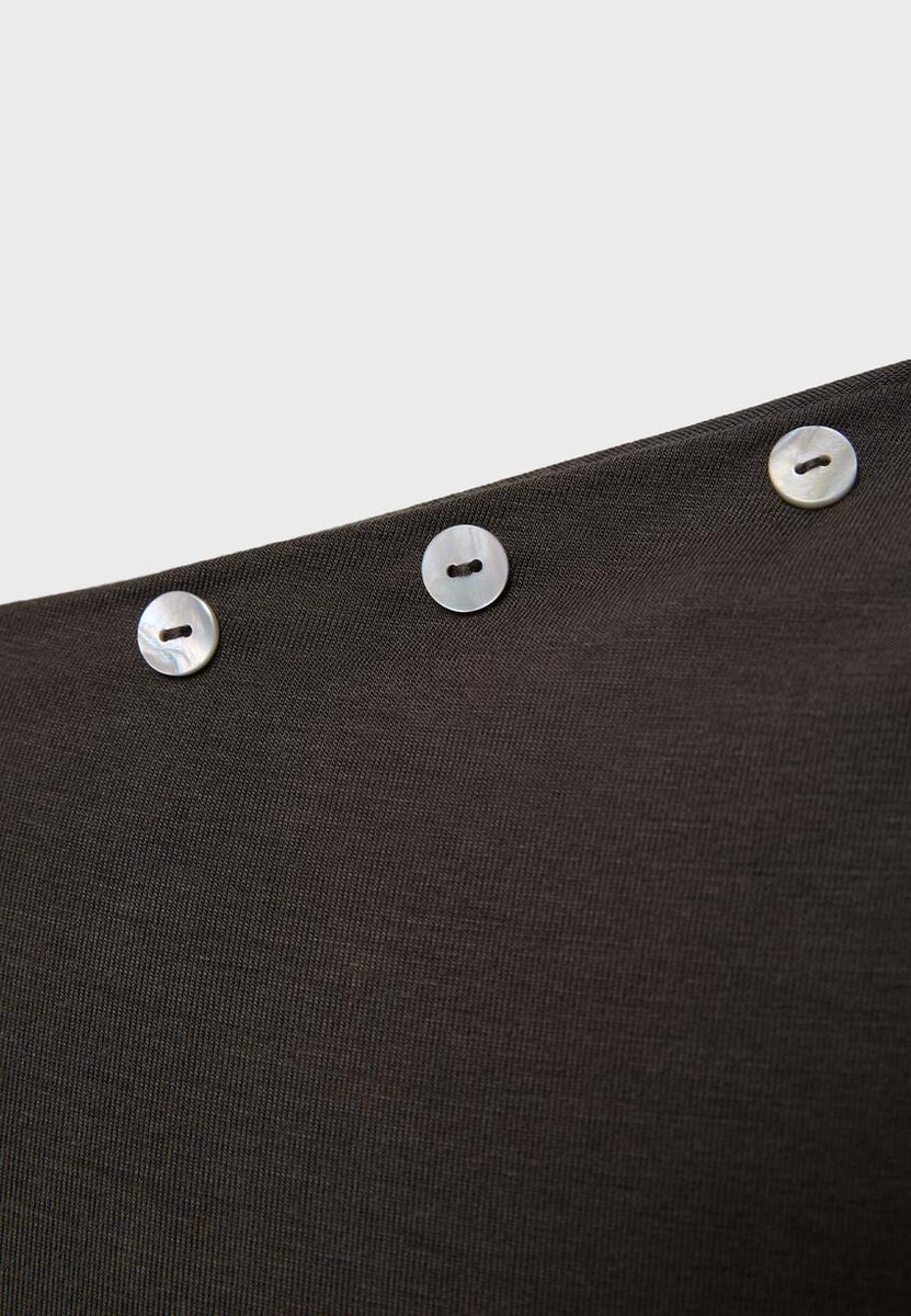 Asymetrické tričko s knoflíky ve Stradivarius za pouhých 29,9 $ K dispozici pouze po omezenou dobu. Mocacos Nuevo pro ženy Vždy v trendu, přijďte a objevte to hned teď!