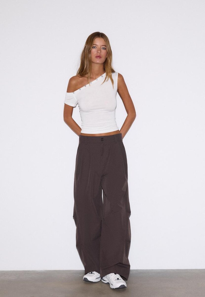 Asymetrické tričko s knoflíky ve Stradivarius za pouhých 29,9 $ K dispozici pouze po omezenou dobu. Mocacos Nuevo pro ženy Vždy v trendu, přijďte a objevte to hned teď!