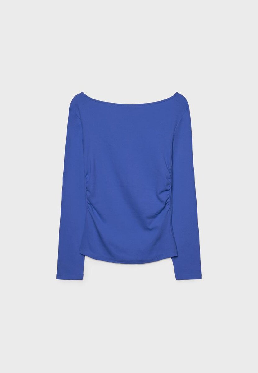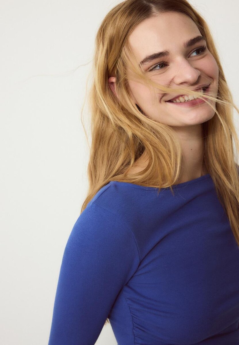 Tričko s dlouhým rukávem, lodním výstřihem a řasením po stranách. K dispozici v několika barvách.