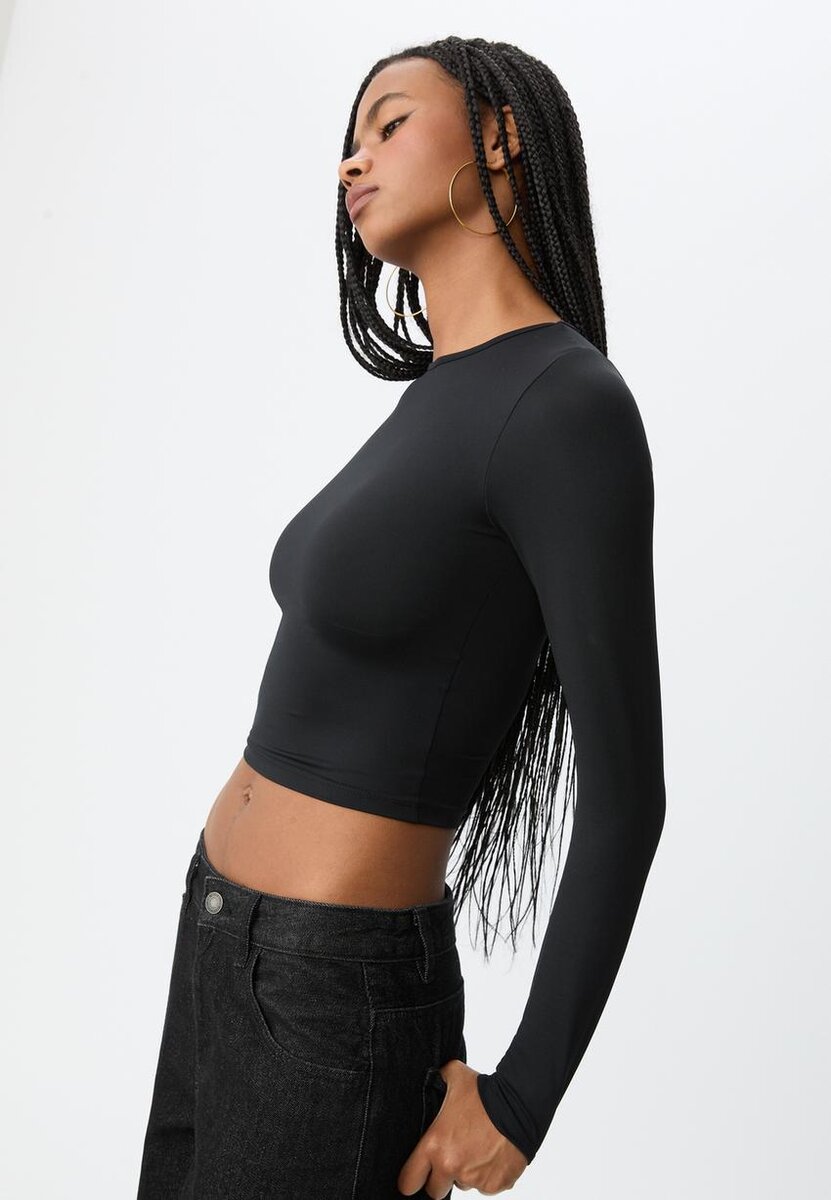 Přiléhavé tričko z polyamidové směsi s kulatým výstřihem a dlouhými rukávy. K dispozici v několika barvách.