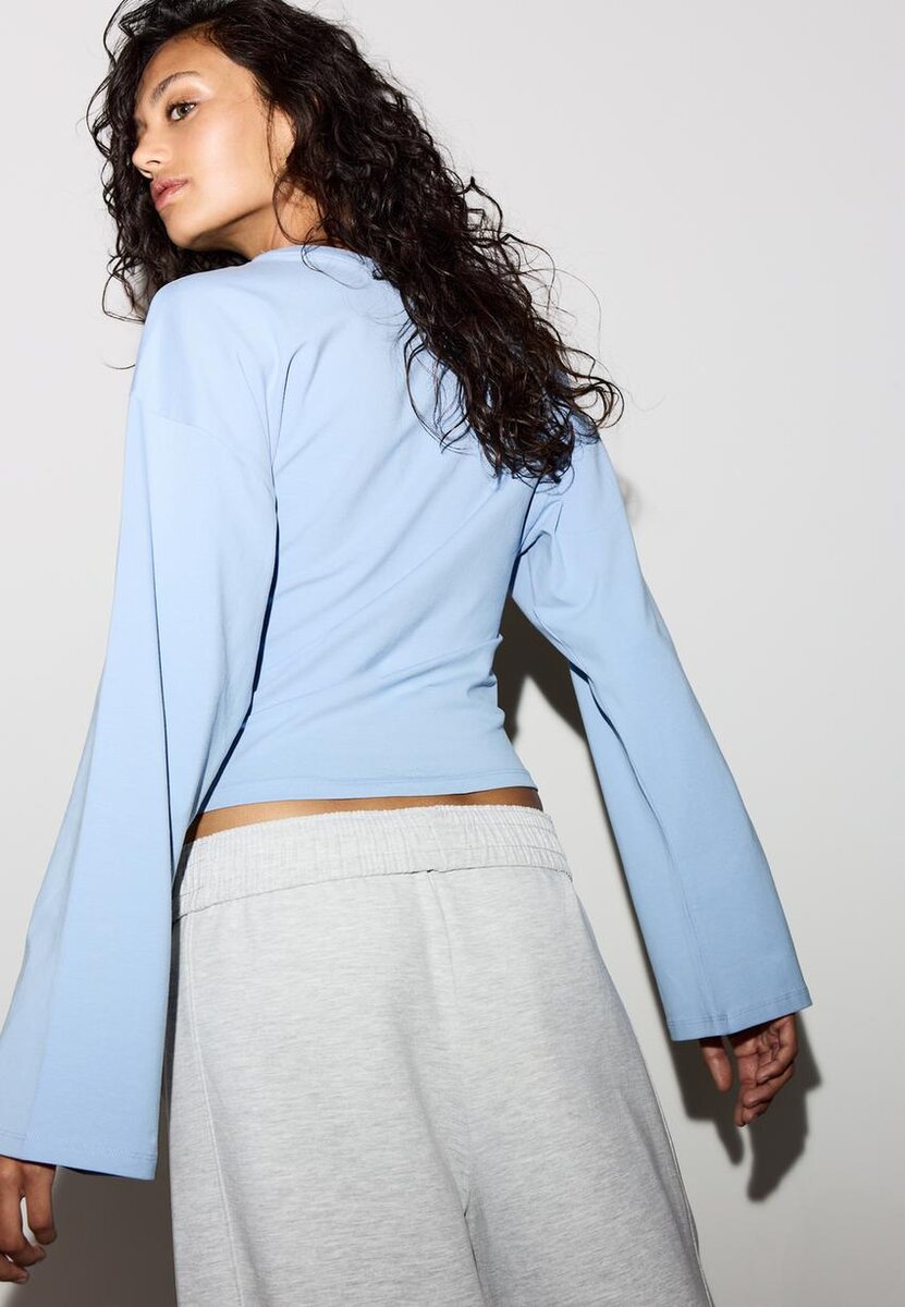 Tričko s kulatým výstřihem a dlouhými rukávy se rozšiřujícím se lemem. K dispozici v různých barvách.