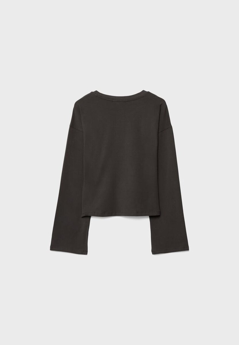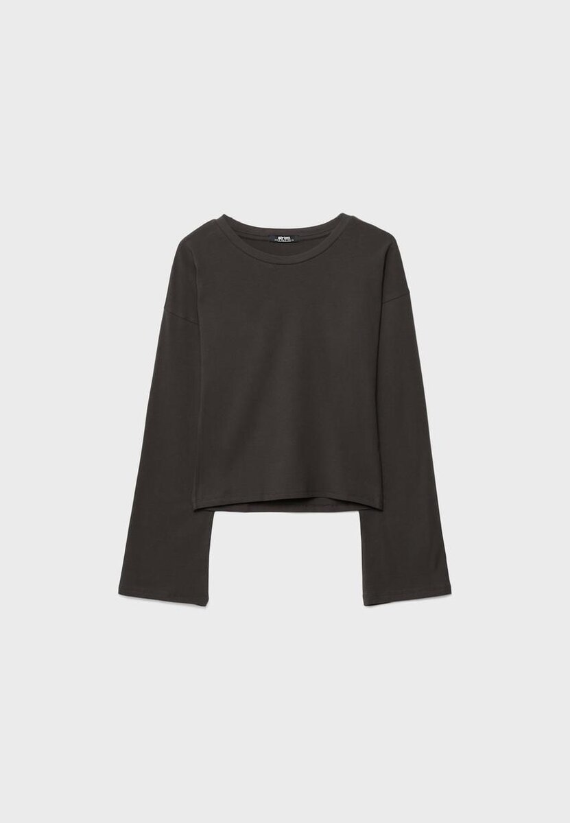 Tričko s kulatým výstřihem, dlouhými rukávy a flared střihem. K dispozici v různých barvách.