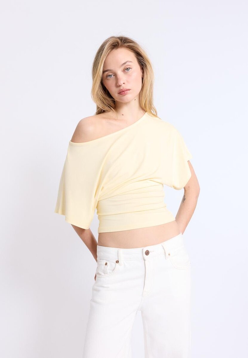 Tričko s krátkým rukávem a výstřihem do lodičky. Přiléhavý spodní okraj. K dispozici v celé řadě barev.