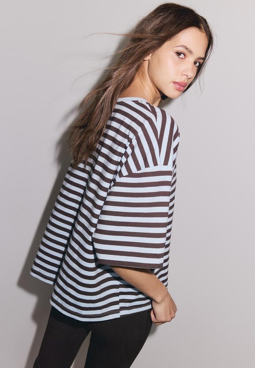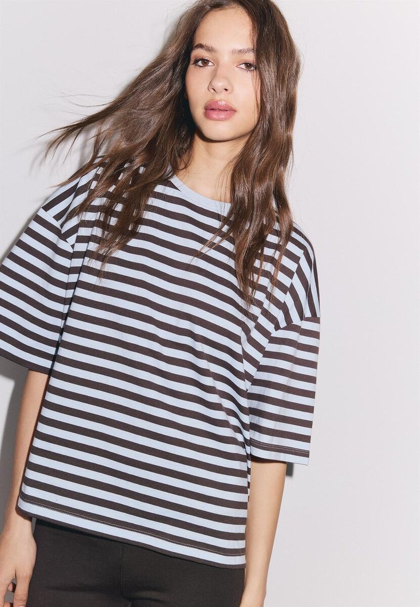 Tričko s krátkým rukávem a volným střihem a kulatým výstřihem. K dispozici v několika barvách.