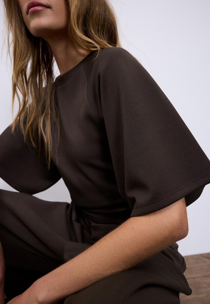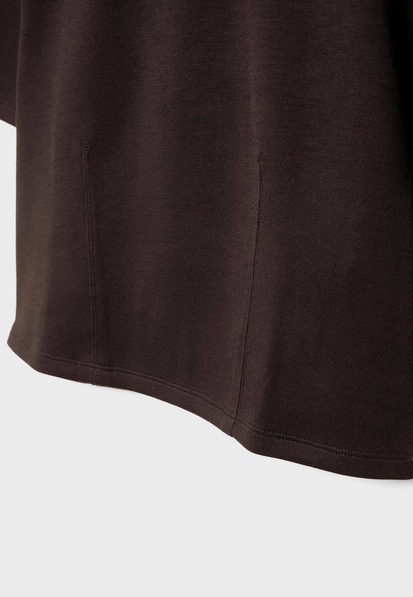 Tričko z materiálu Jemné na dotek s kulatým výstřihem a krátkými rukávy. S detailem v podobě záševky v pase. K dispozici v několika barvách.