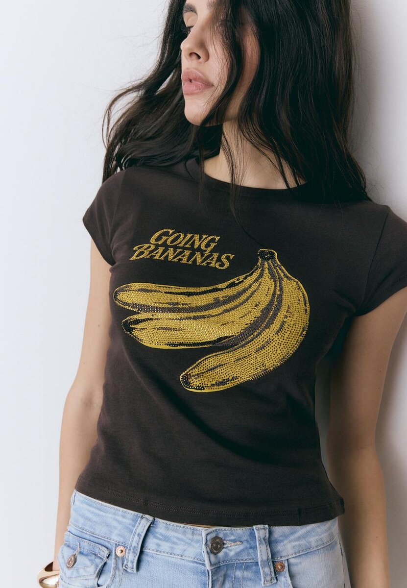 Tričko s krátkým rukávem a potiskem banánů od Stradivarius za pouhých 25,9 $ K dispozici pouze po omezenou dobu. Null pro ženy Vždy v módě, přijďte a objevte to hned teď!