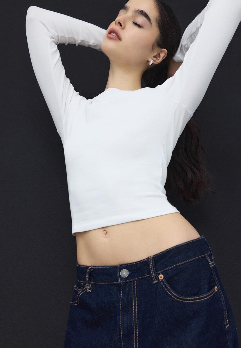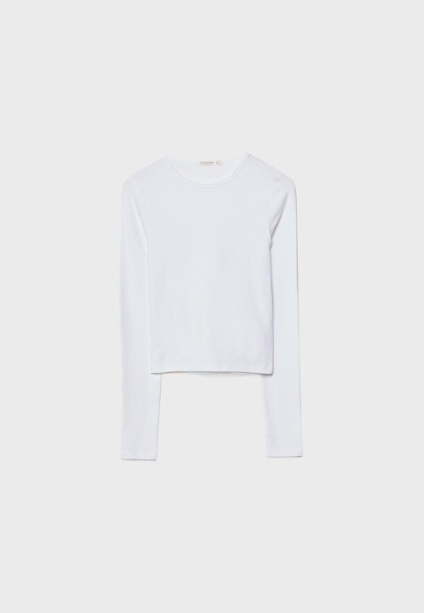 Basic přiléhavé tričko z bavlny s elastanem. Kulatý výstřih a dlouhé rukávy. K dispozici v různých barvách.